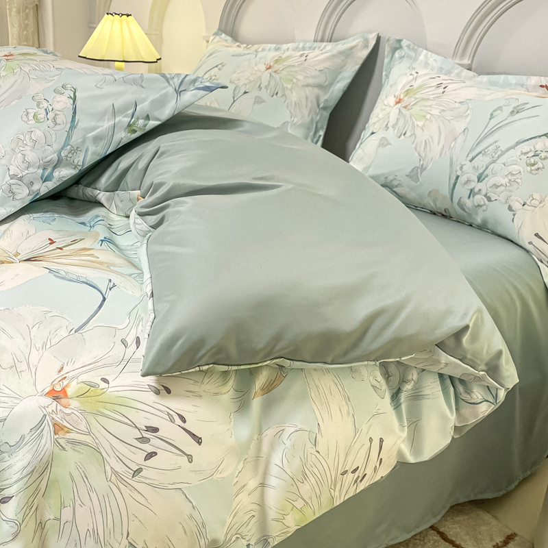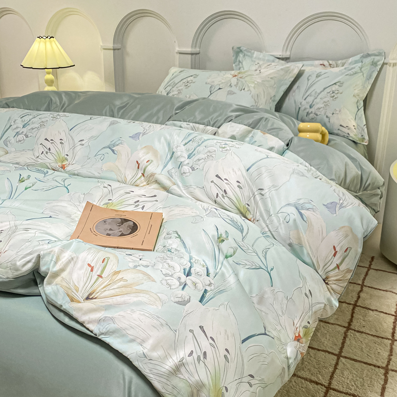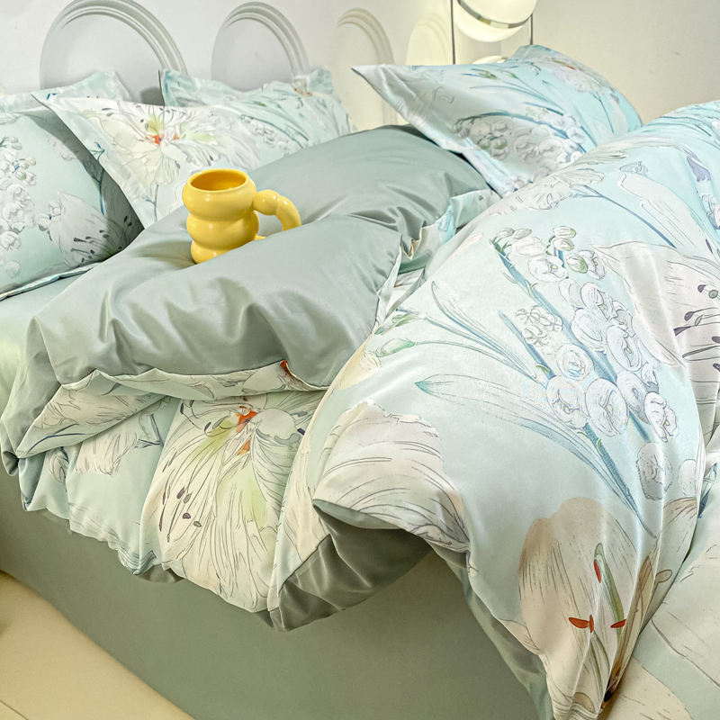 商品名称:悦织湾2025新款冰丝印花四件套美式数码轻奢时尚学生三件套宿舍单双人床上用品4件套 初夏