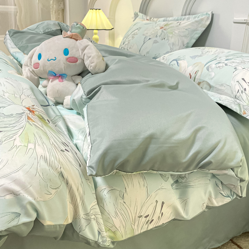 悦织湾2025新款冰丝印花四件套美式数码轻奢时尚学生三件套宿舍单双人床上用品4件套 初夏