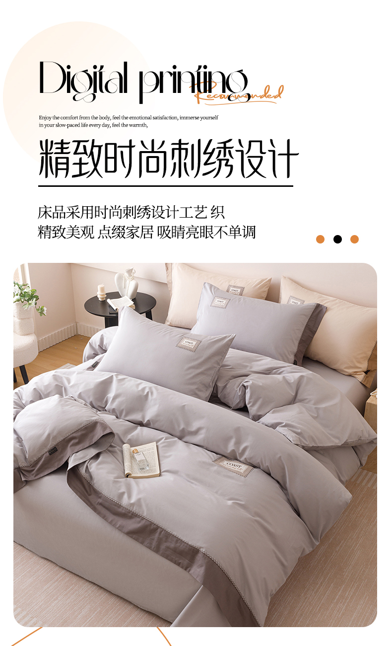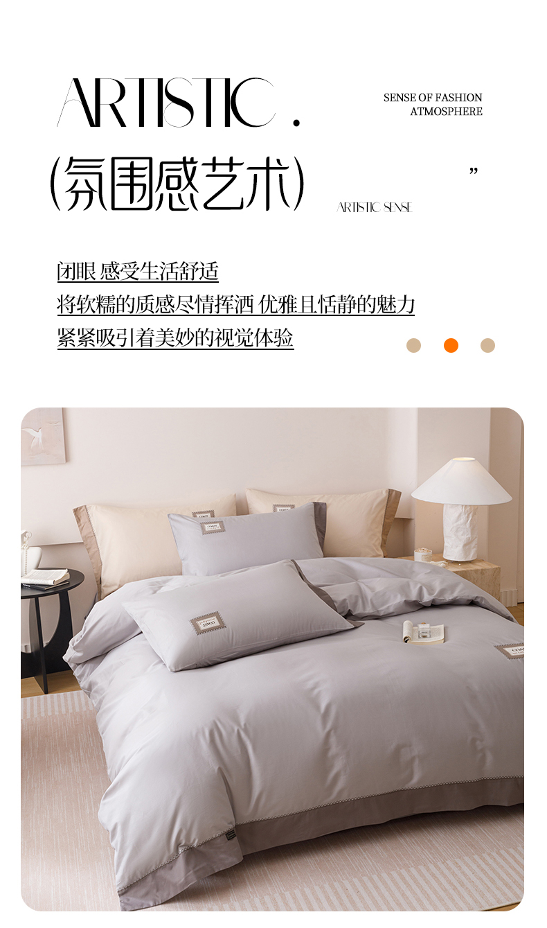 商品名称:艾莱家纺 2025新款A类精梳贴布纯棉刺绣花四件套-星澜 星澜-烟云灰