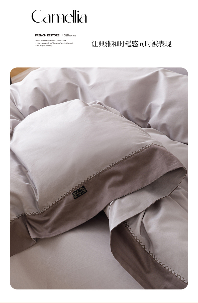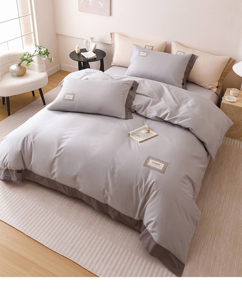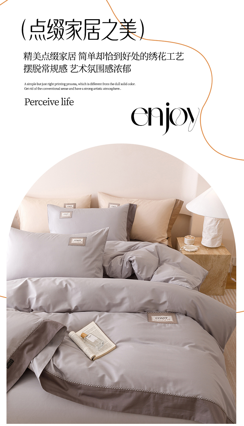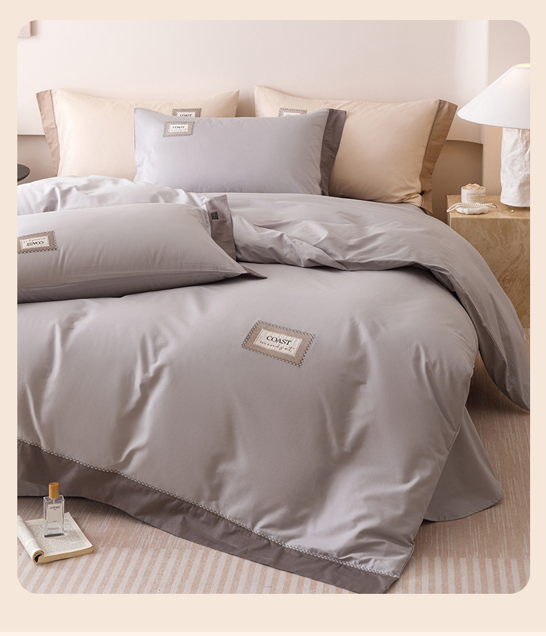 艾莱家纺 2025新款A类精梳贴布纯棉刺绣花四件套-星澜 星澜-烟云灰