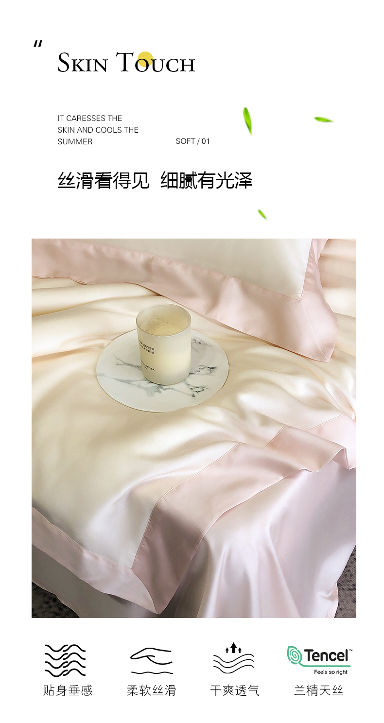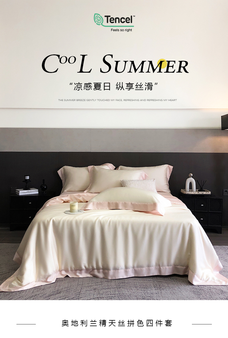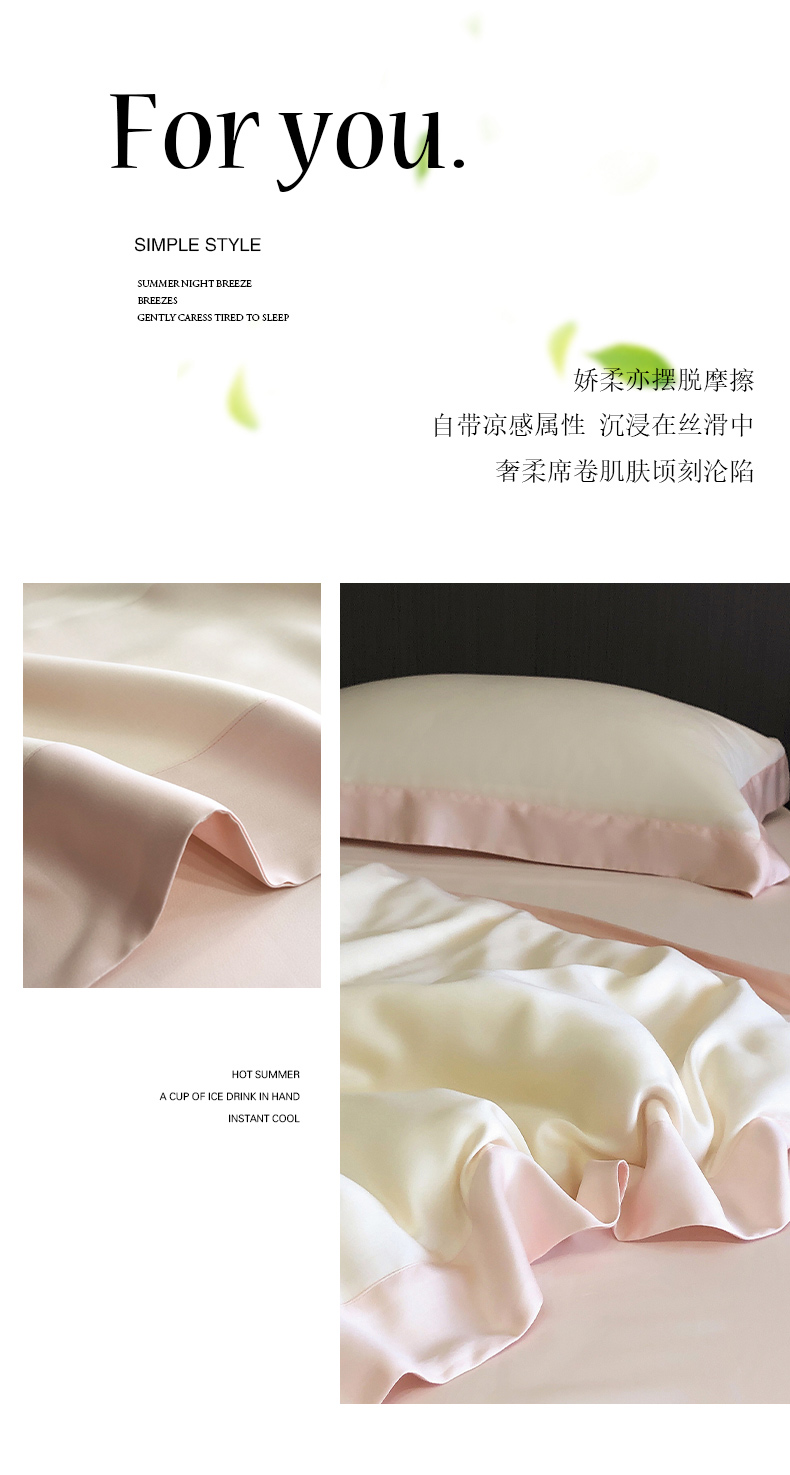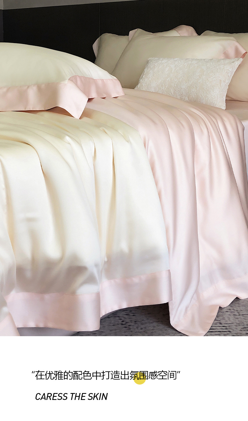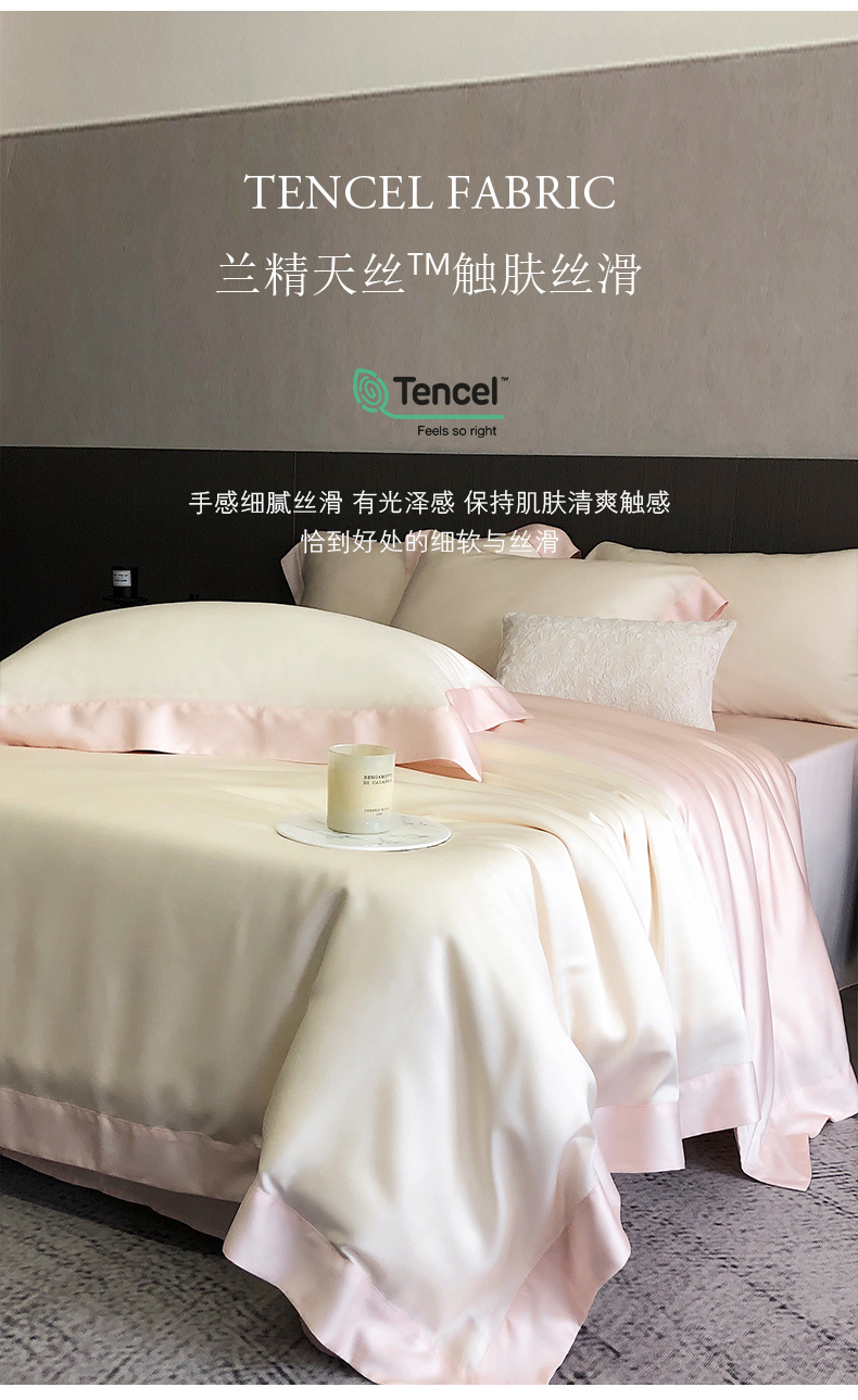 商品名称:云栖家居 2025莱赛尔60兰精天丝双拼纯色四件套 云朵白&仙仙粉