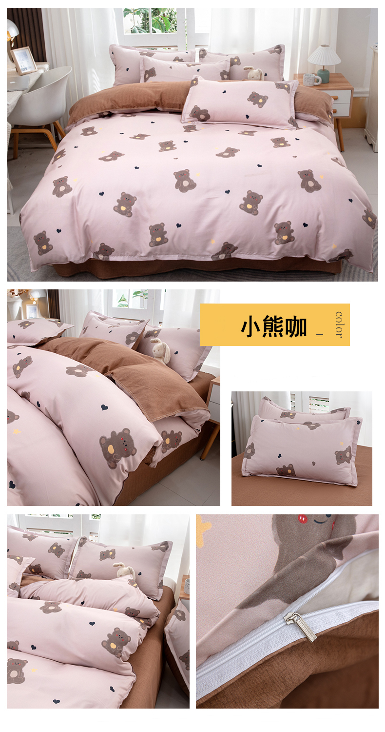 当前位置: 91家纺网 > 商品网购 > 床品套件 > 四件套 > 其它四件套 > 乐居坊 2025新款柔软亲肤印花四件套大床图 小熊咖