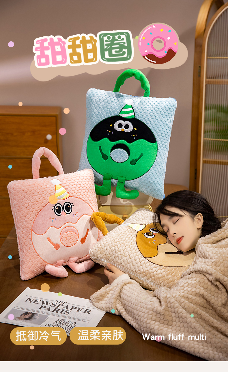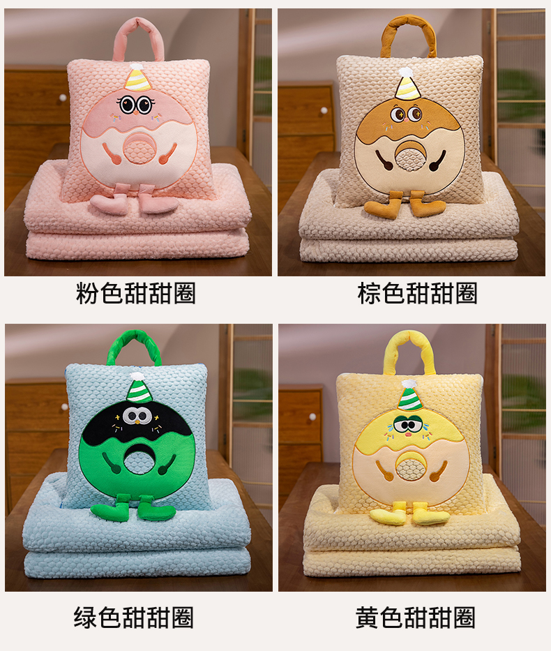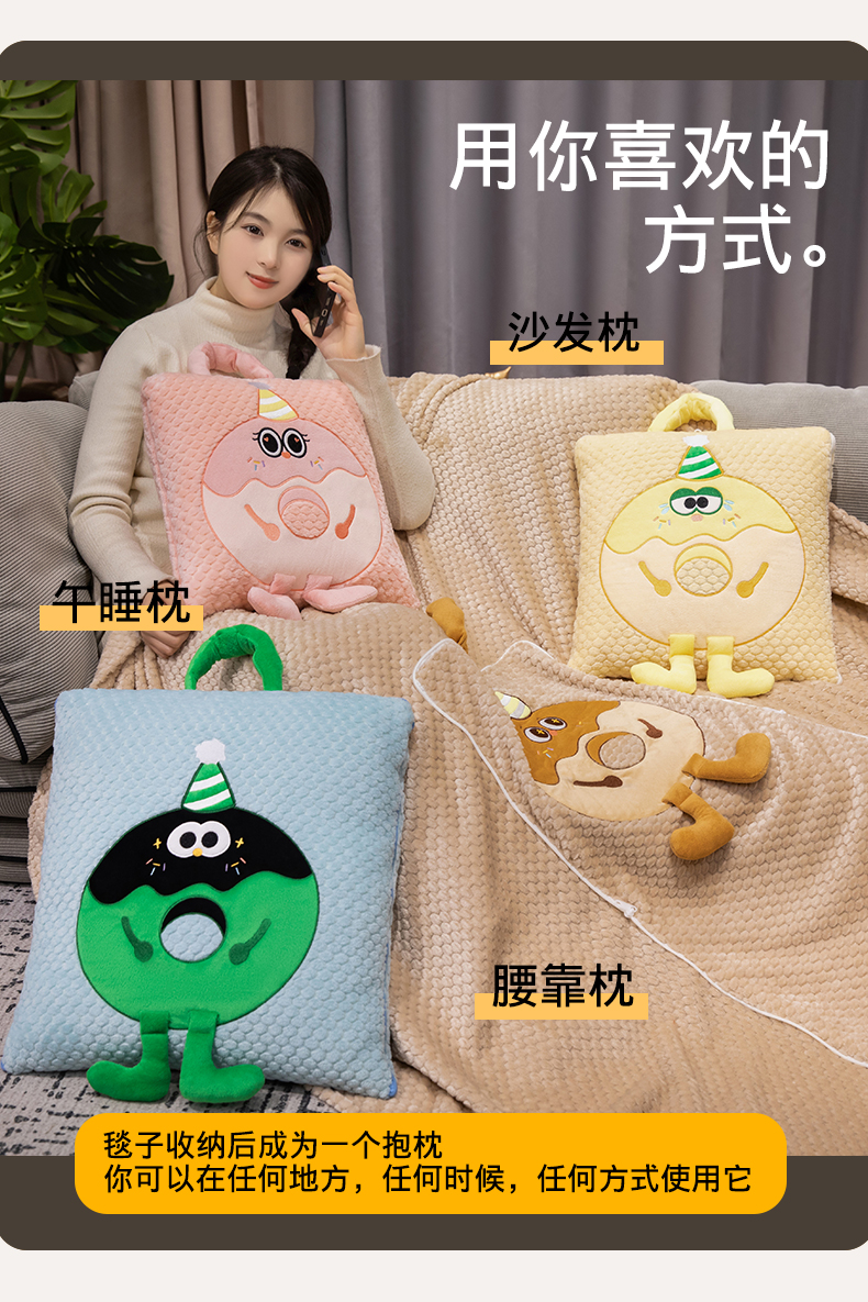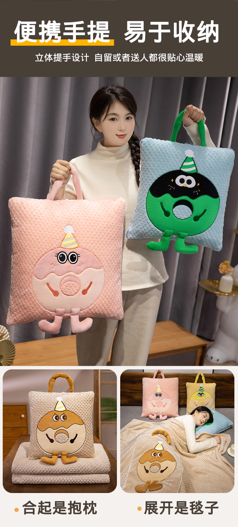 (总)中华鲟2025新款多功能豆豆绒提花网红抱枕毯卡通立体贴布刺绣抱枕被,甜甜圈毛毯-粉,甜甜圈毛毯-黄,甜甜圈毛毯-卡,甜甜圈毛毯-蓝