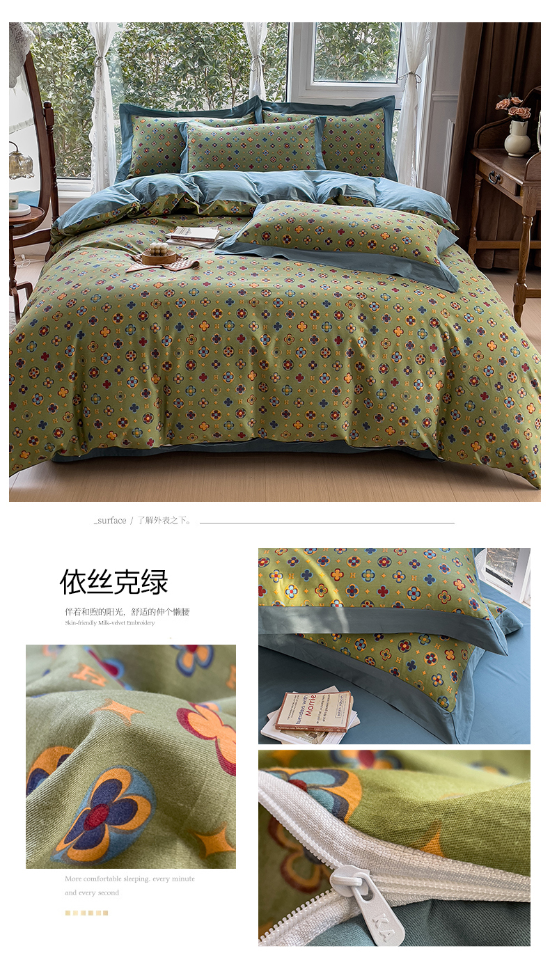 (总)KA家纺 2025冬季高克重绣花雕花牛奶绒四件套,相约奶昔白,相约粉,相约绿,相约蓝