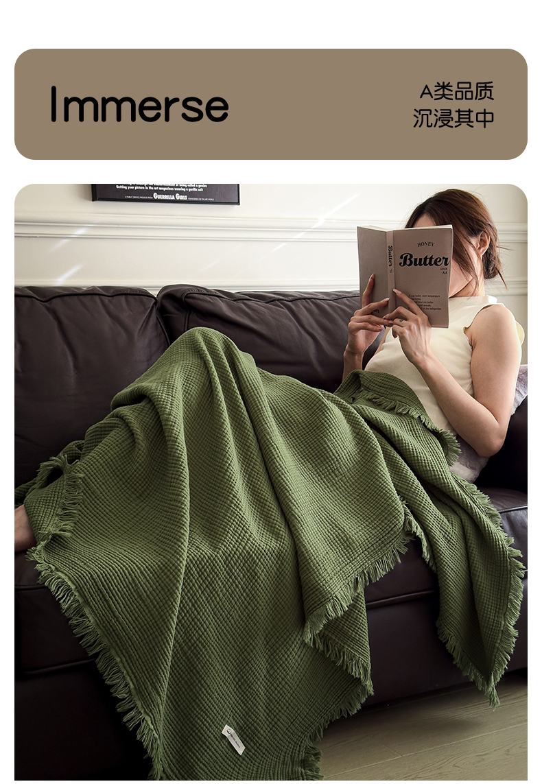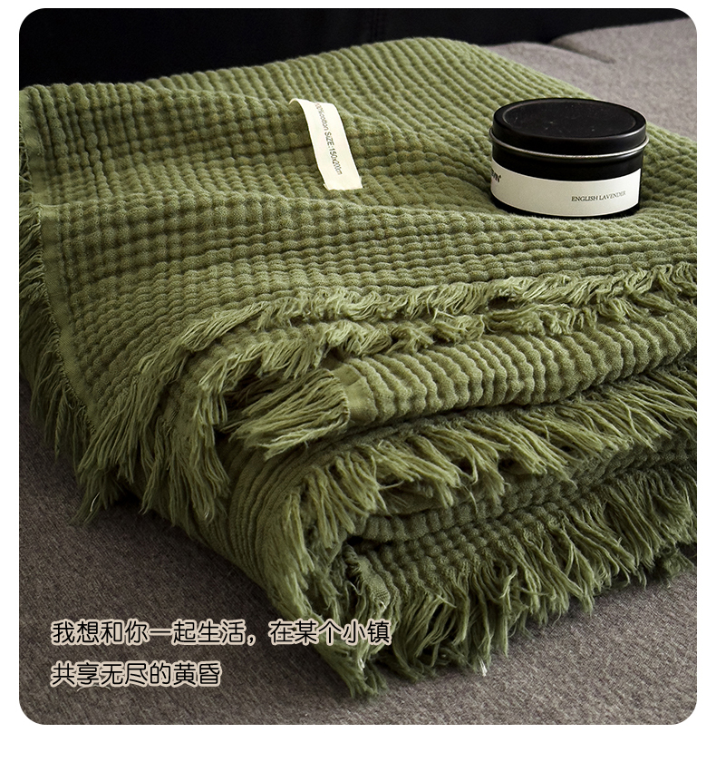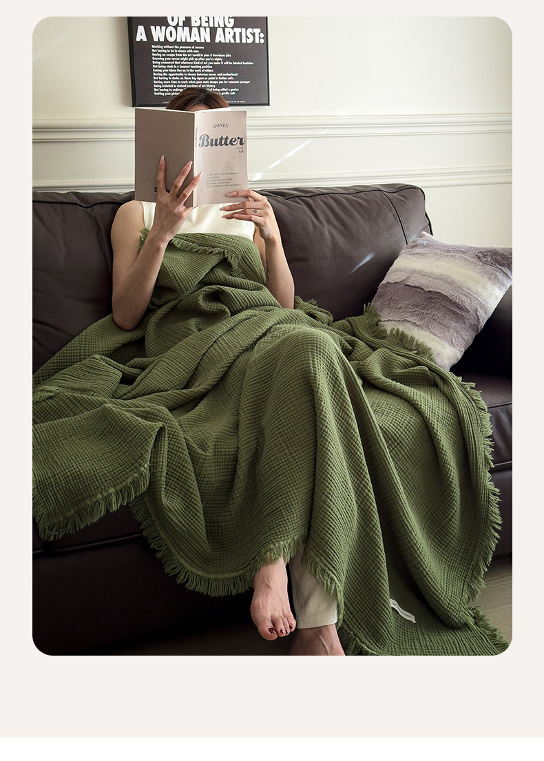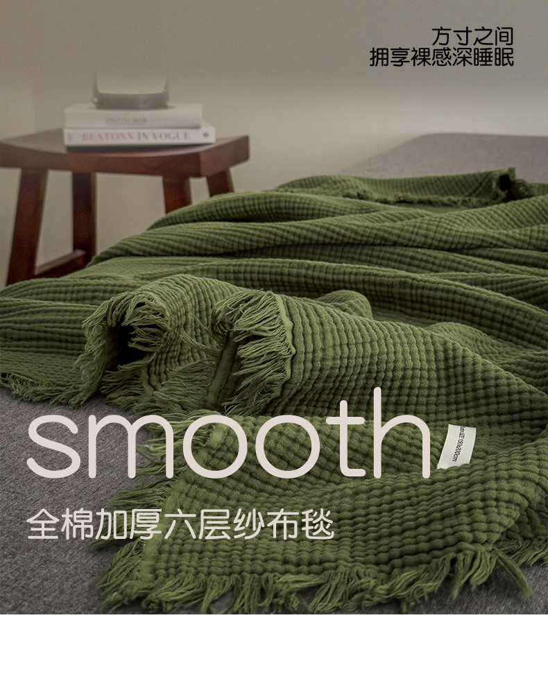 兄弟坊 2026新款美拉德全棉夏被纱布毯空调毯飞机毯 雅居-质感绿