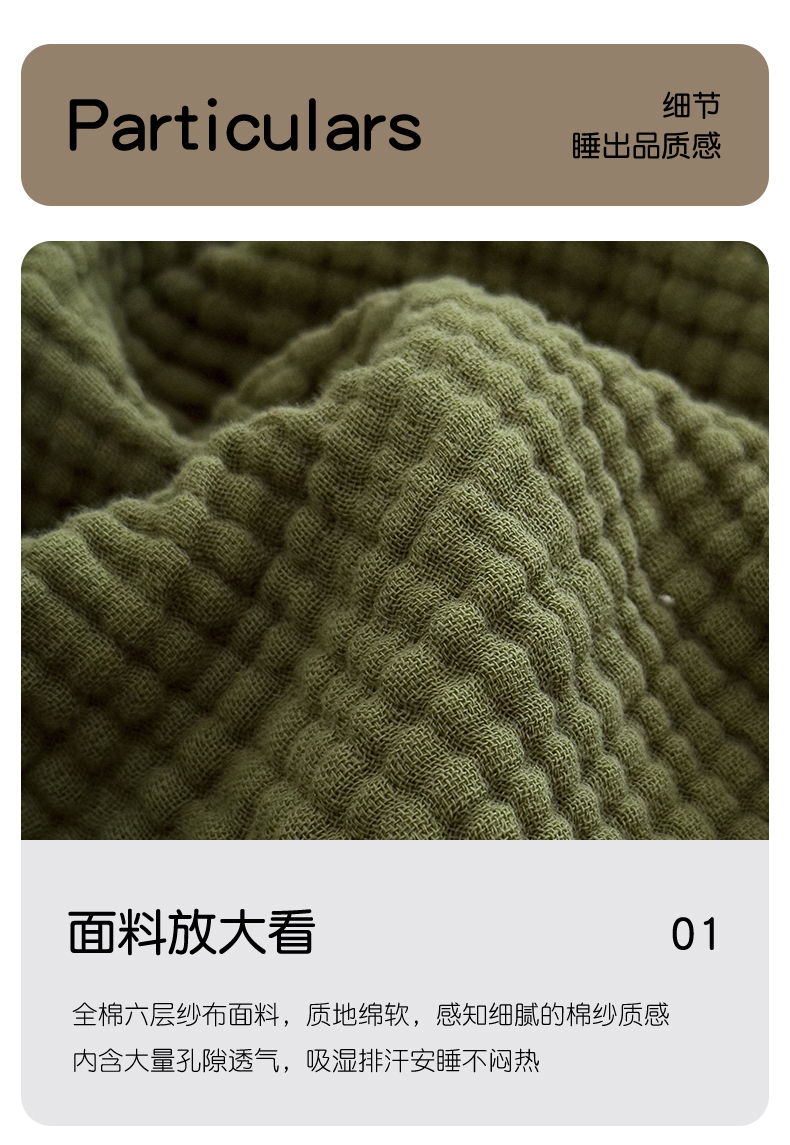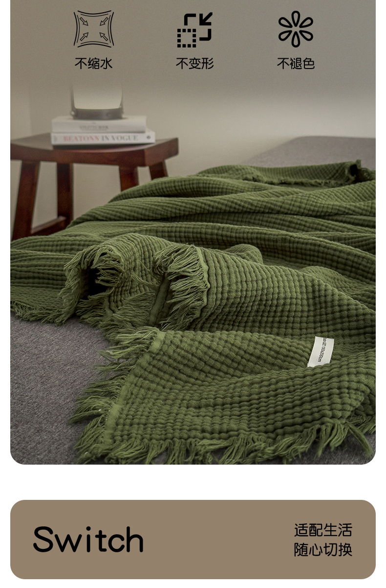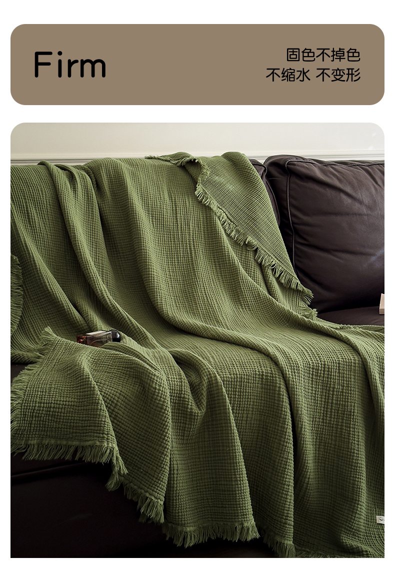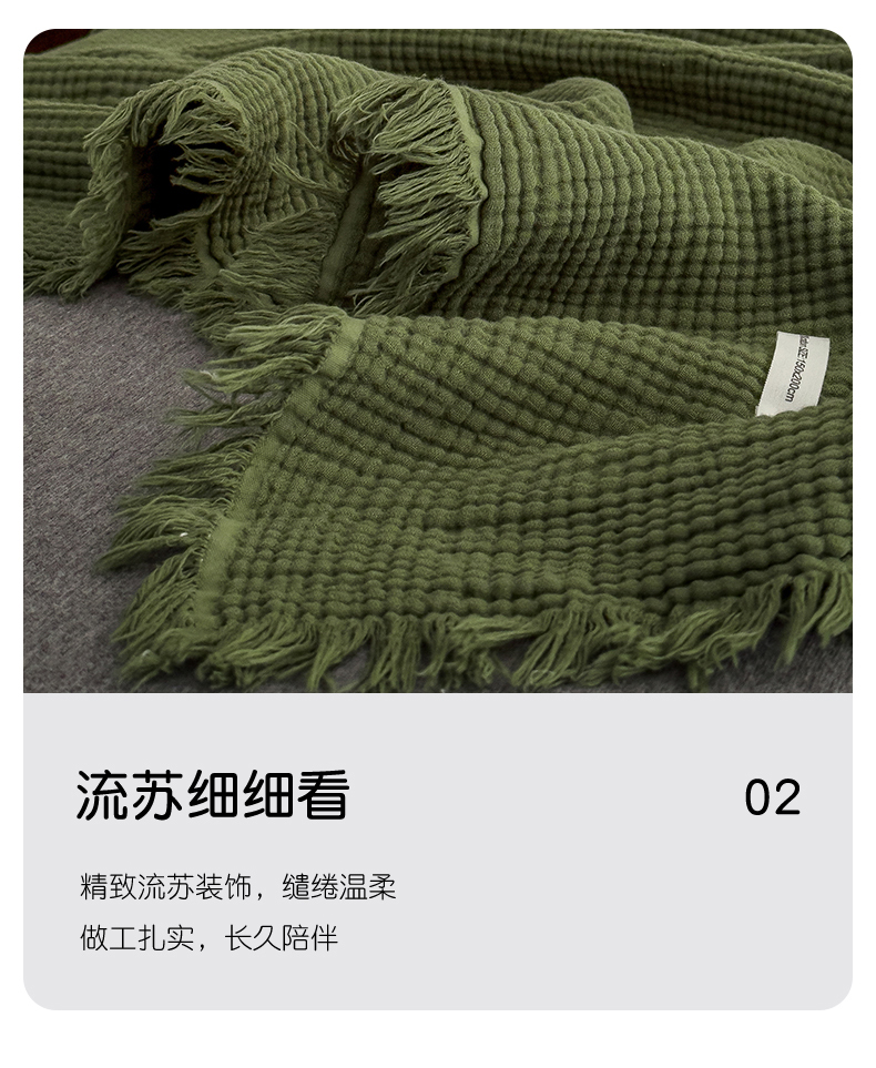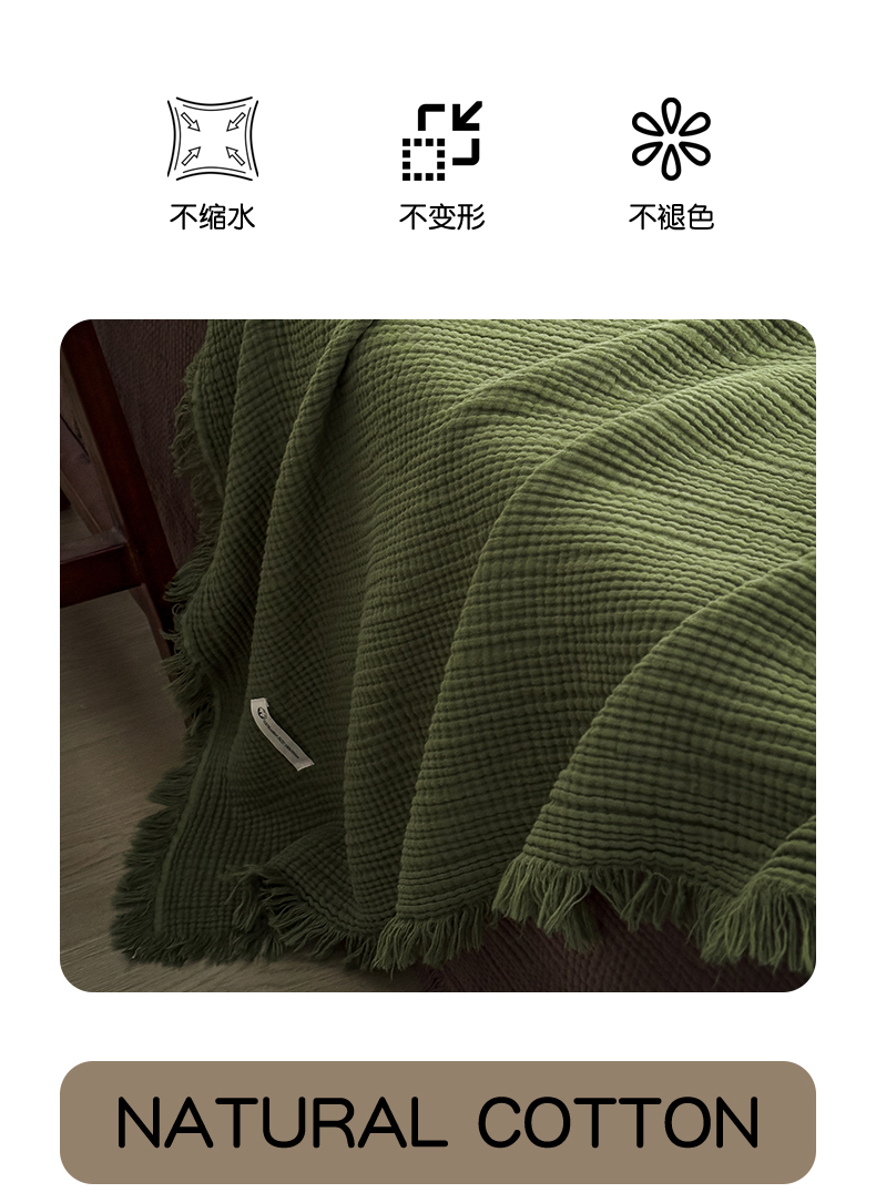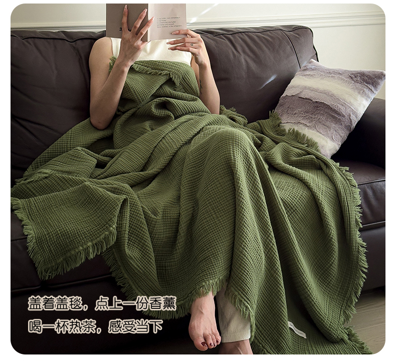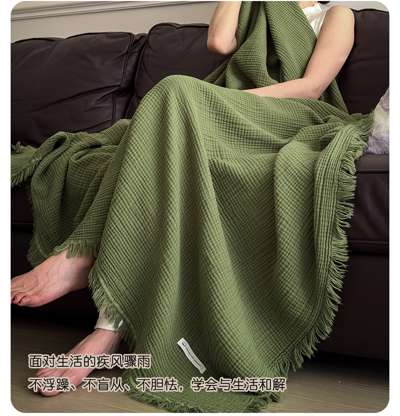 商品名称:兄弟坊 2026新款美拉德全棉夏被纱布毯空调毯飞机毯 雅居-质感绿