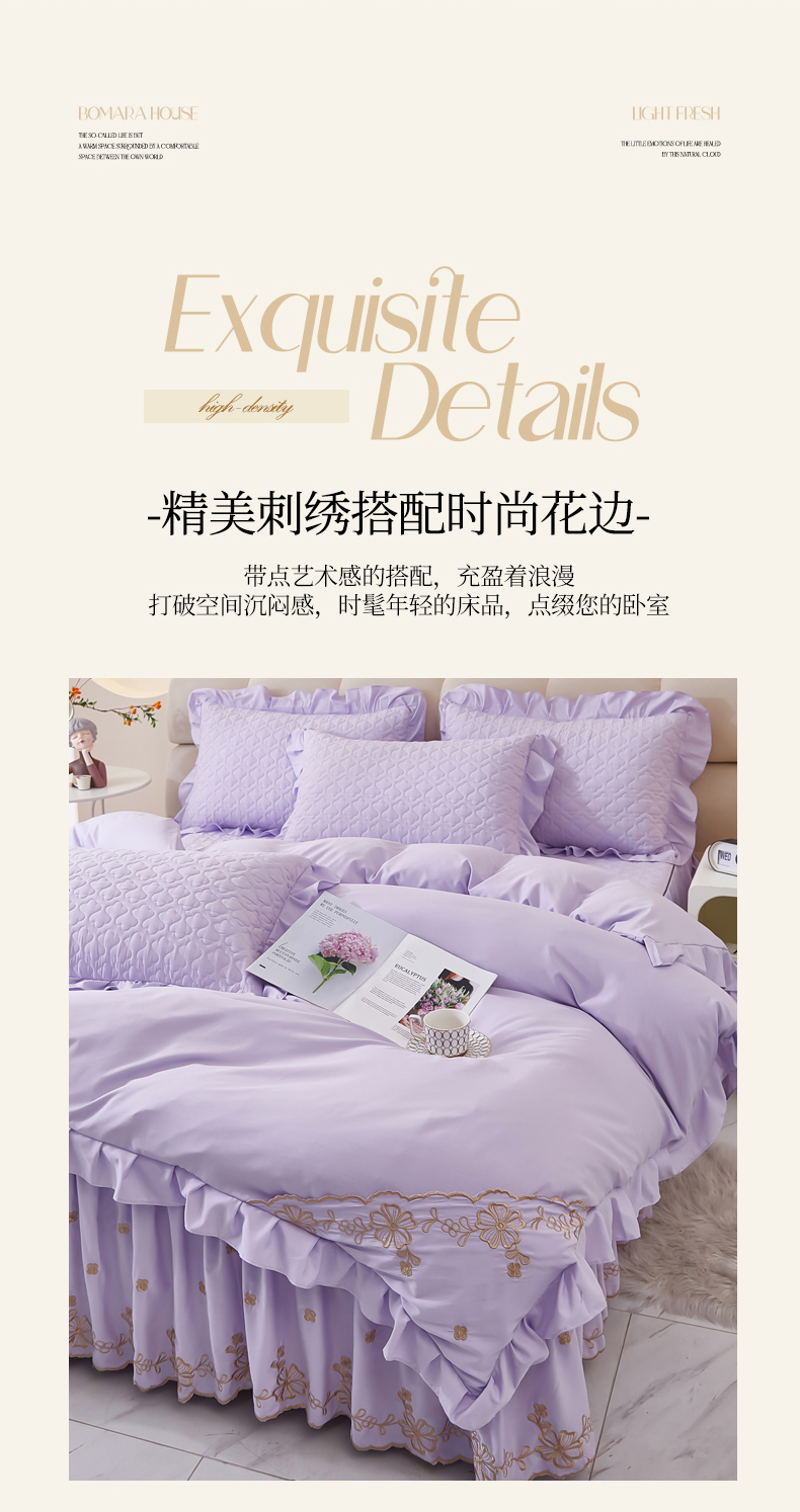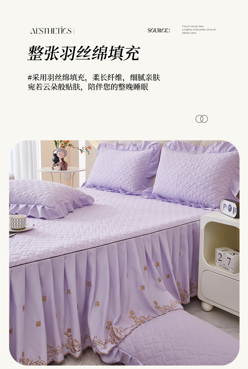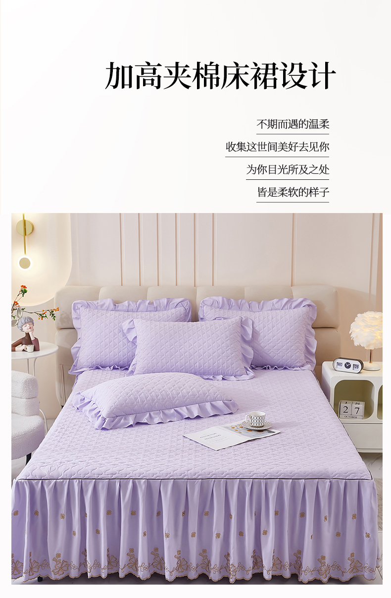 当前位置: 91家纺网 > 商品网购 > 床品套件 > 四件套 > 其它四件套 > 家之硕家纺 2025新款云朵棉刺绣床裙四件套 紫色