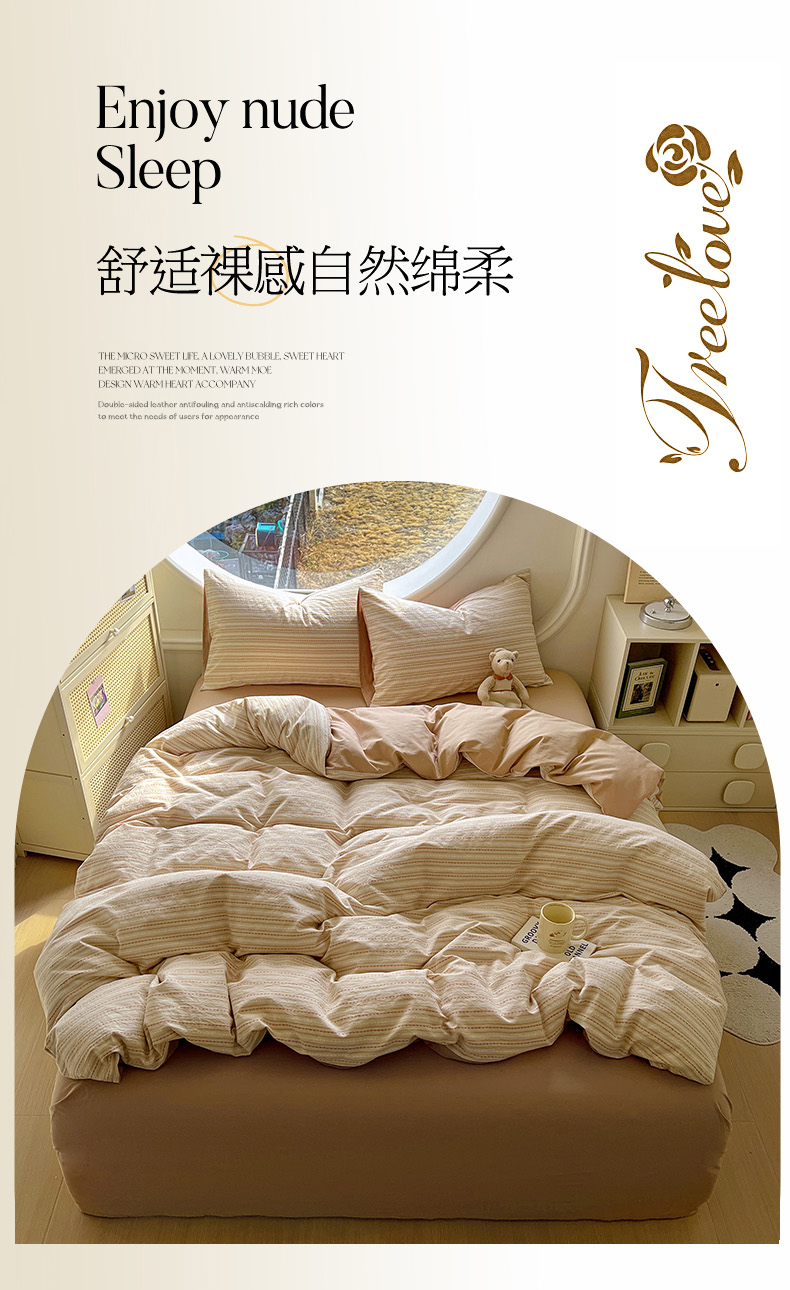 田野家纺2025新款全棉水洗棉提花豆豆系列四件套 水洗棉豆豆-卡其