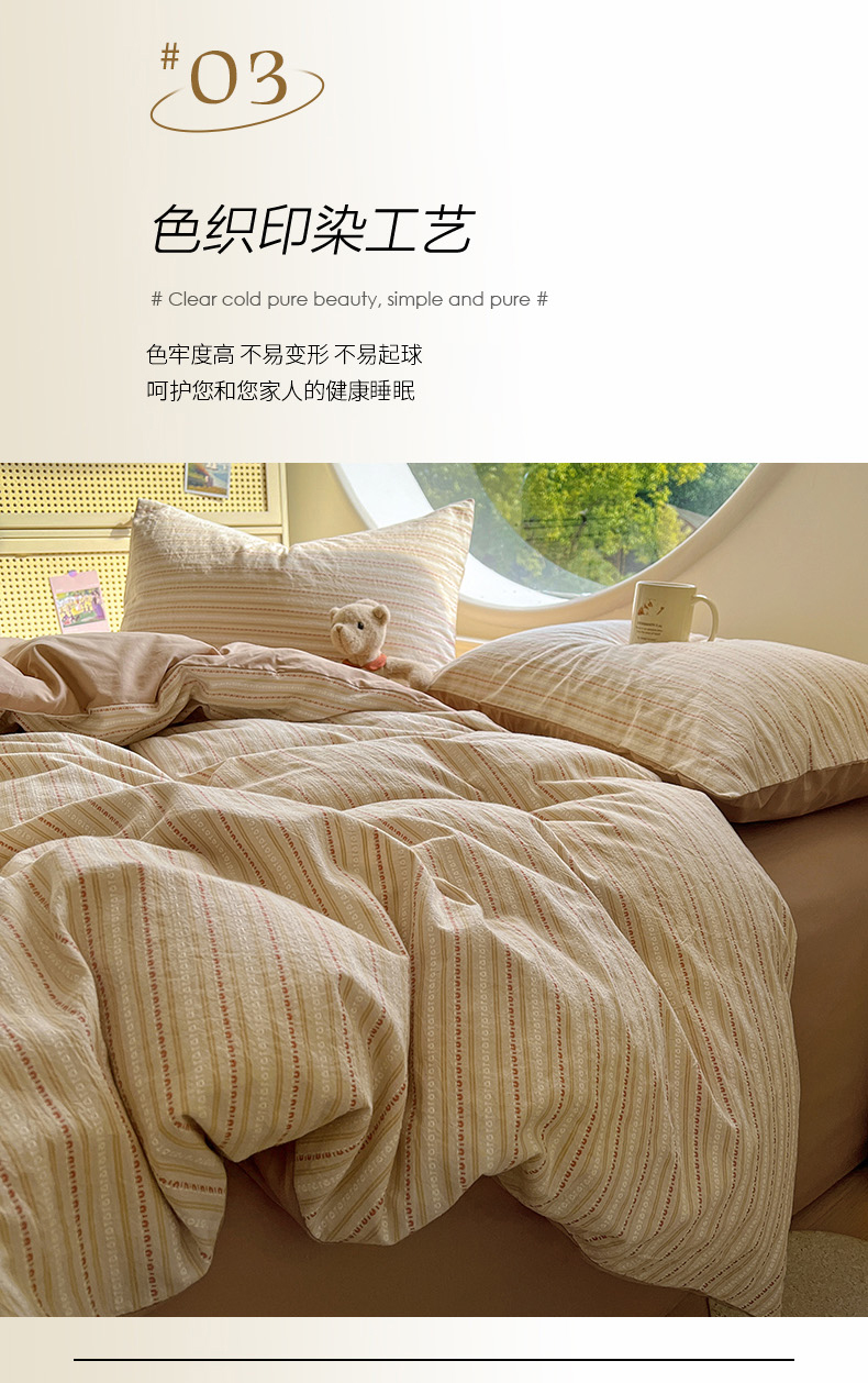 商品名称:田野家纺2025新款全棉水洗棉提花豆豆系列四件套 水洗棉豆豆-卡其