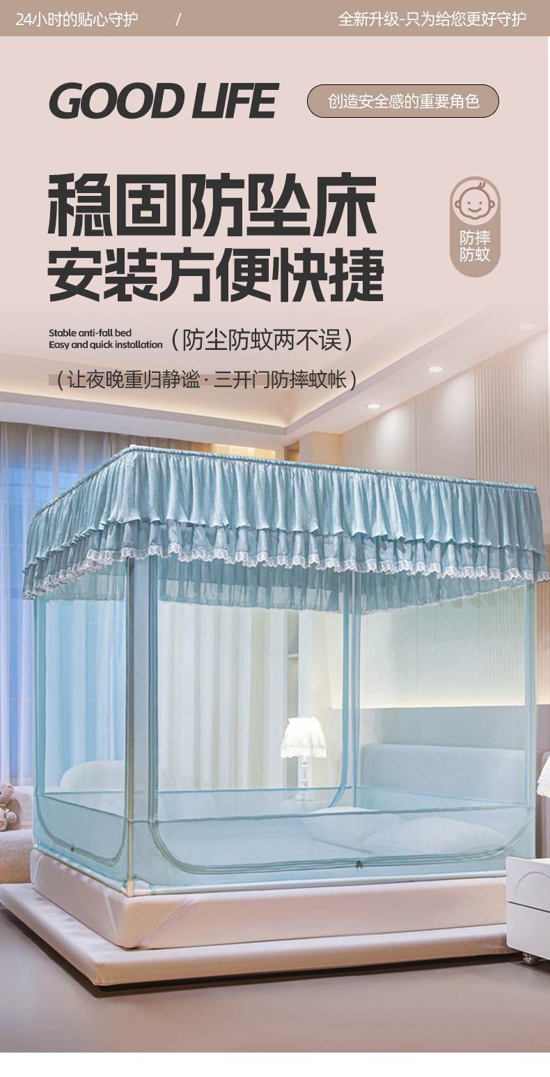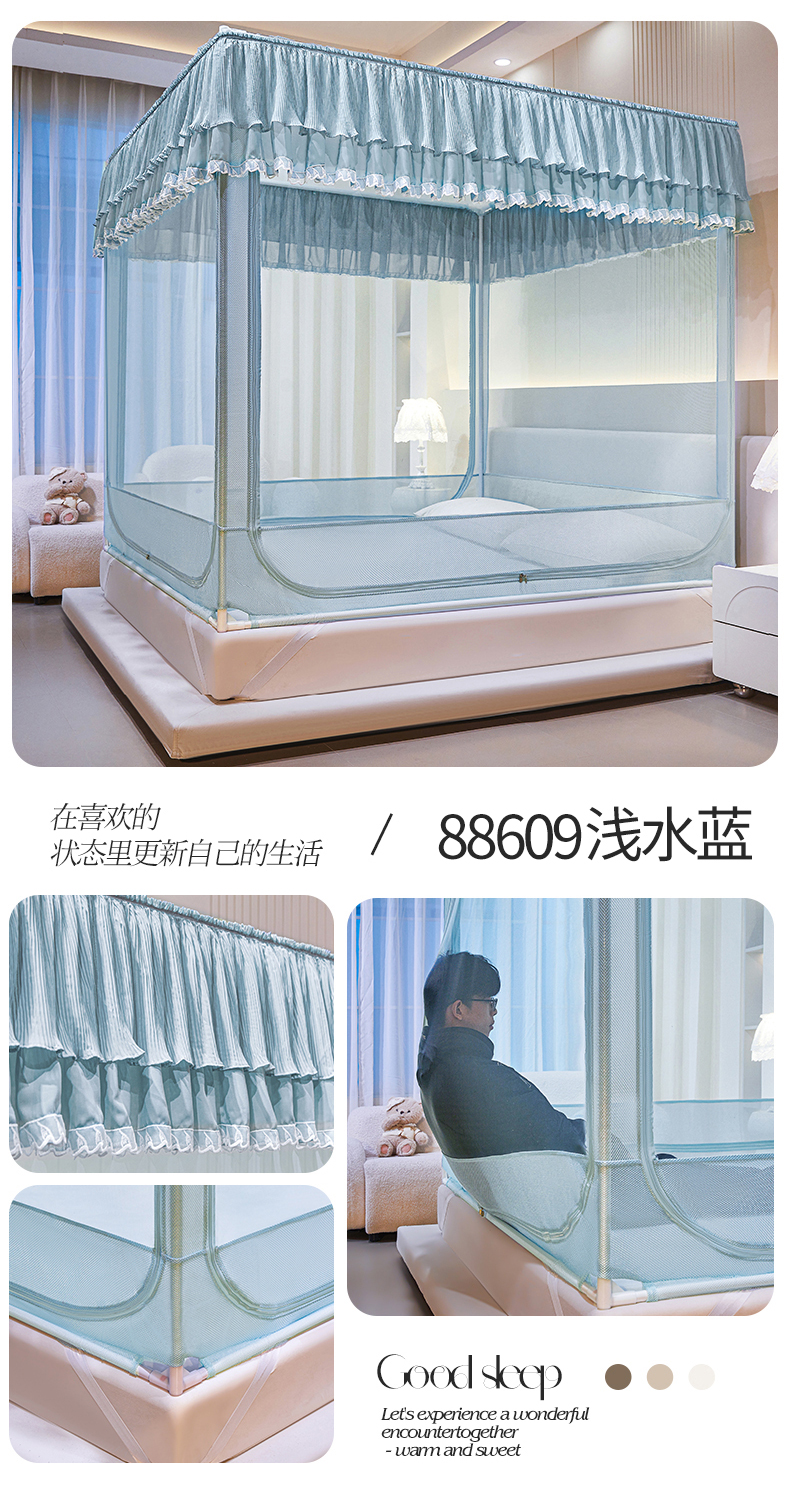 当前位置: 91家纺网 > 商品网购 > 床上用品 > 蚊帐 > 坐床式蚊帐 > 夏彩 2025新款浪漫唯美T+U防摔蚊帐-88609 88609浅水蓝