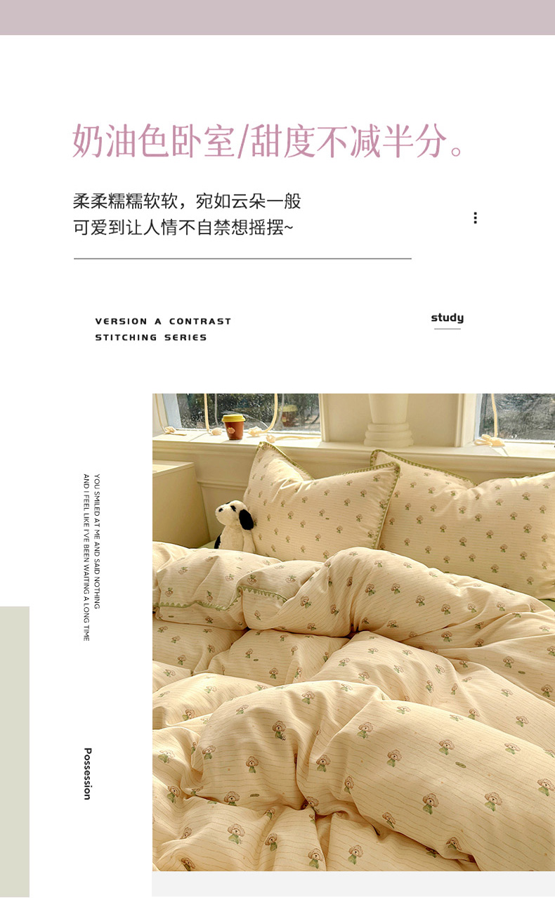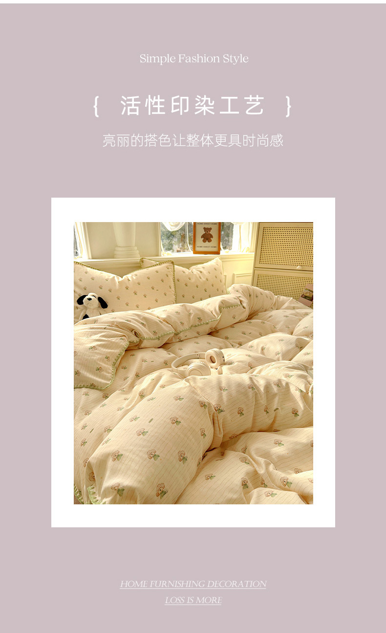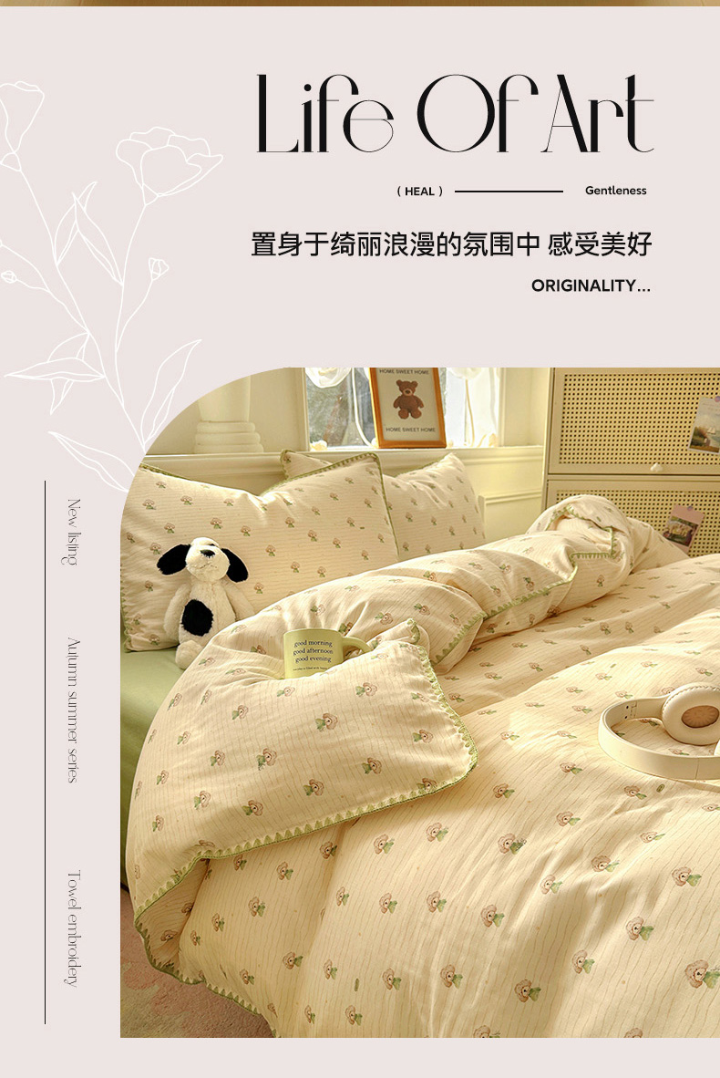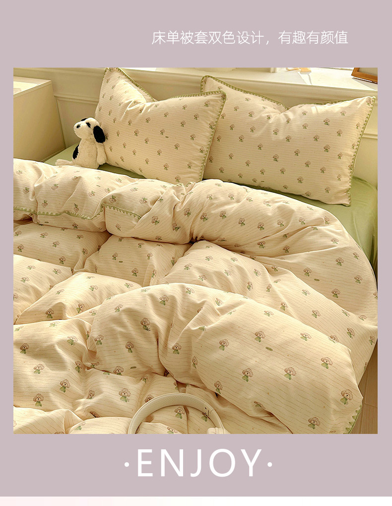 (总)田野 2022新款水洗棉小清新小碎花全棉四件套,花丛,花涧,绿婉,曼舞,桃夭,甜馨草莓,兔兔,银杏