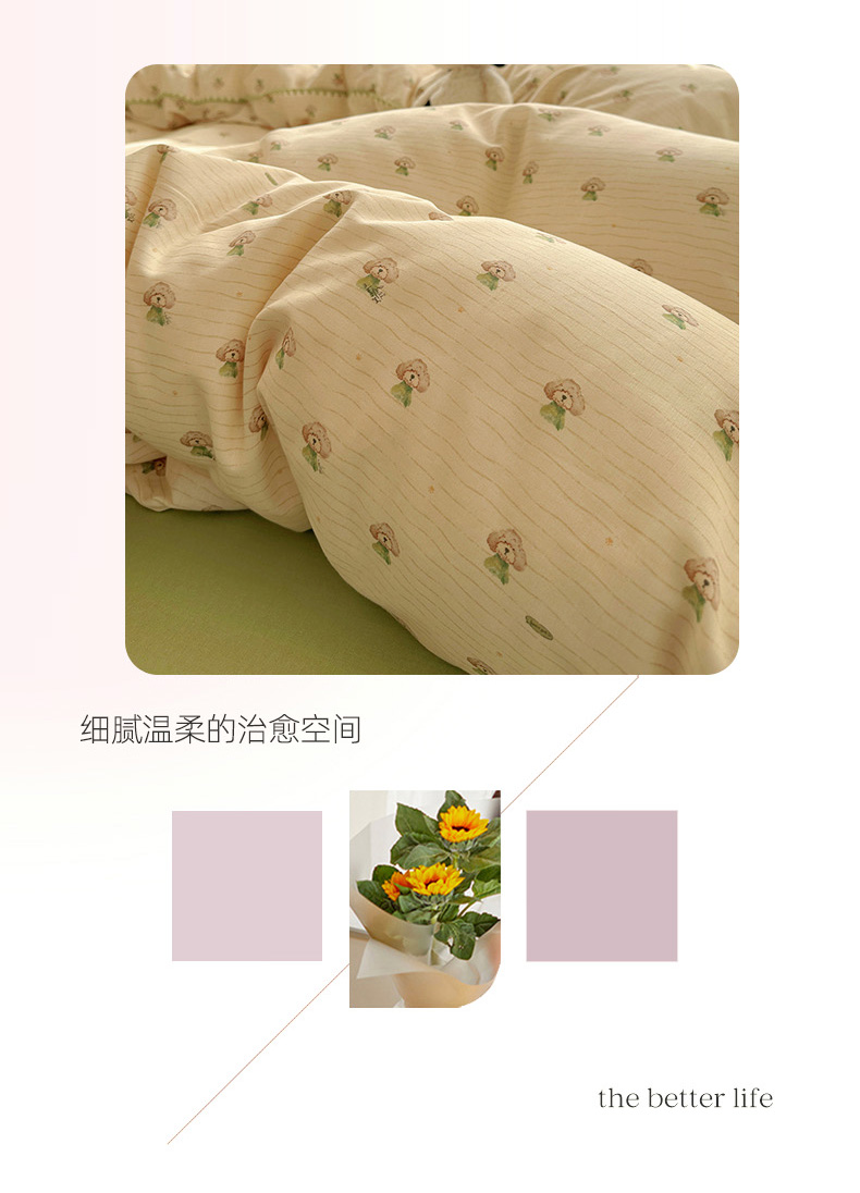 商品名称:田野家纺2025新款A类全棉双层纱四件套 布丁狗