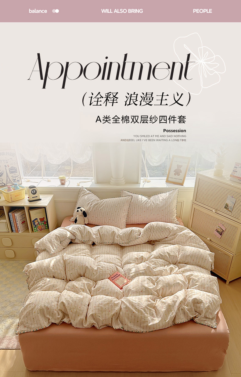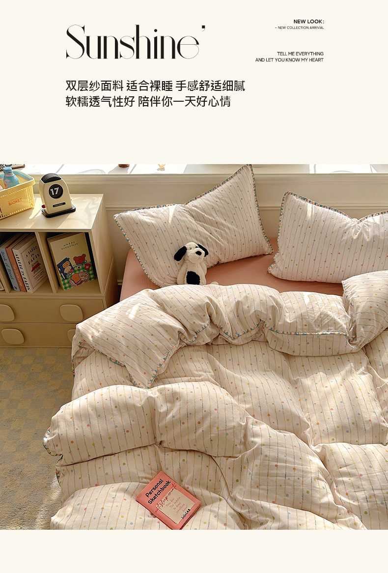 田野家纺2025新款A类全棉双层纱四件套 七彩泡泡