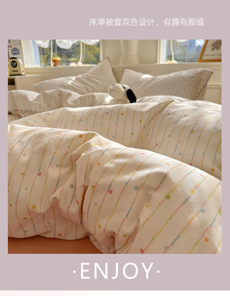 (总)田野 2025新款全棉水洗棉提花四件套,花田,花颜,帽子狗,蘑菇,飘带,泰迪狗,小树林-咖,小象,小雨点,樱桃-绿