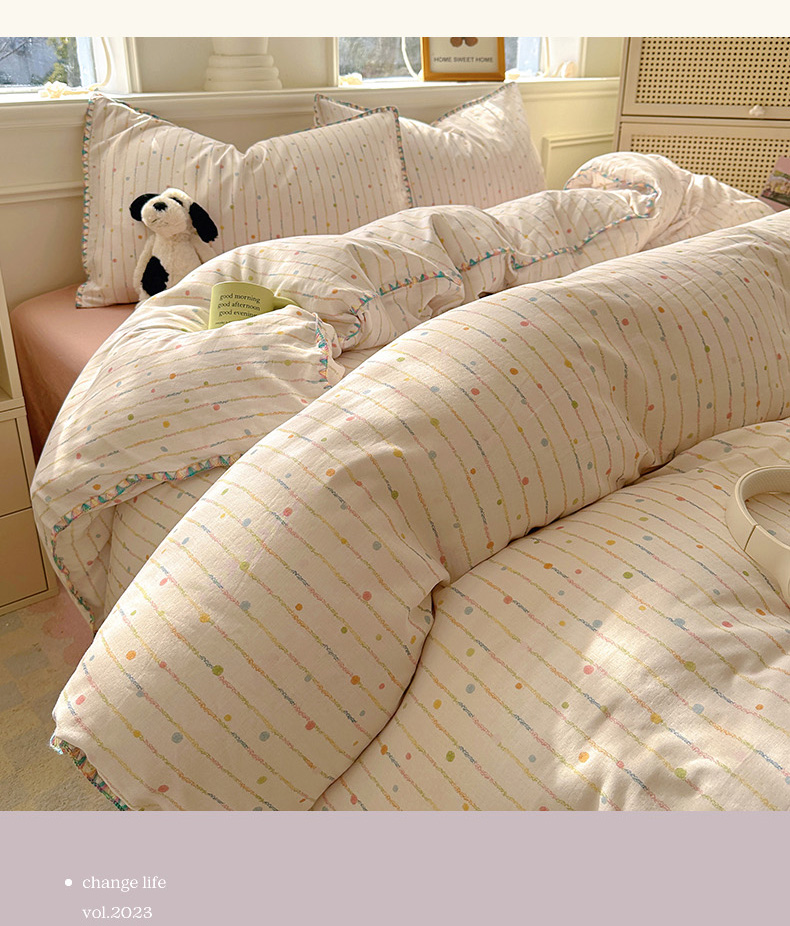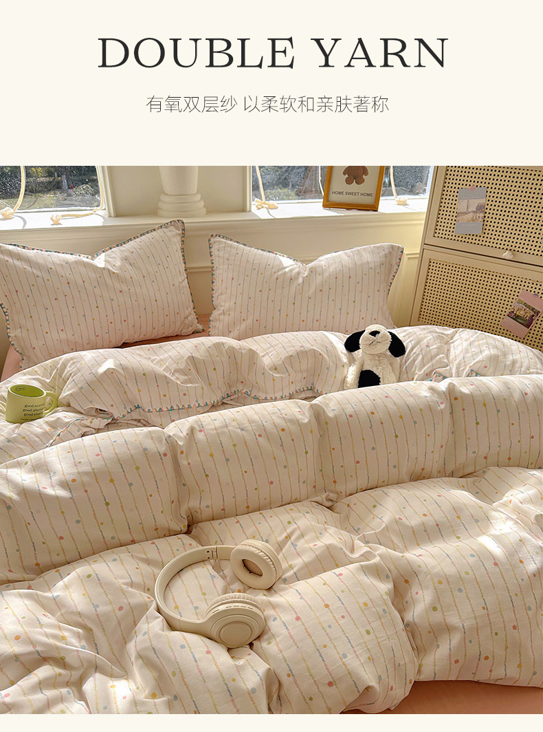 商品名称:田野家纺2025新款A类全棉双层纱四件套 七彩泡泡
