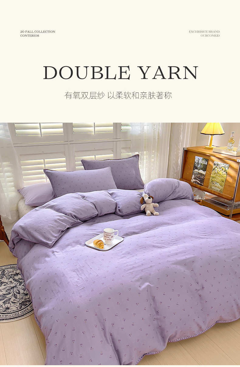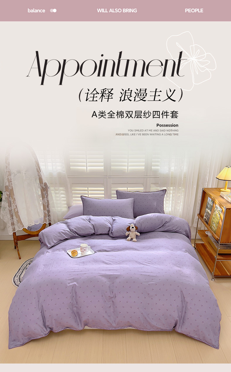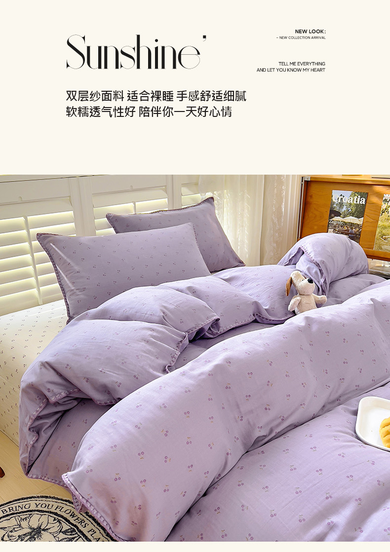 商品名称:田野家纺2025新款A类全棉双层纱四件套 伊甜