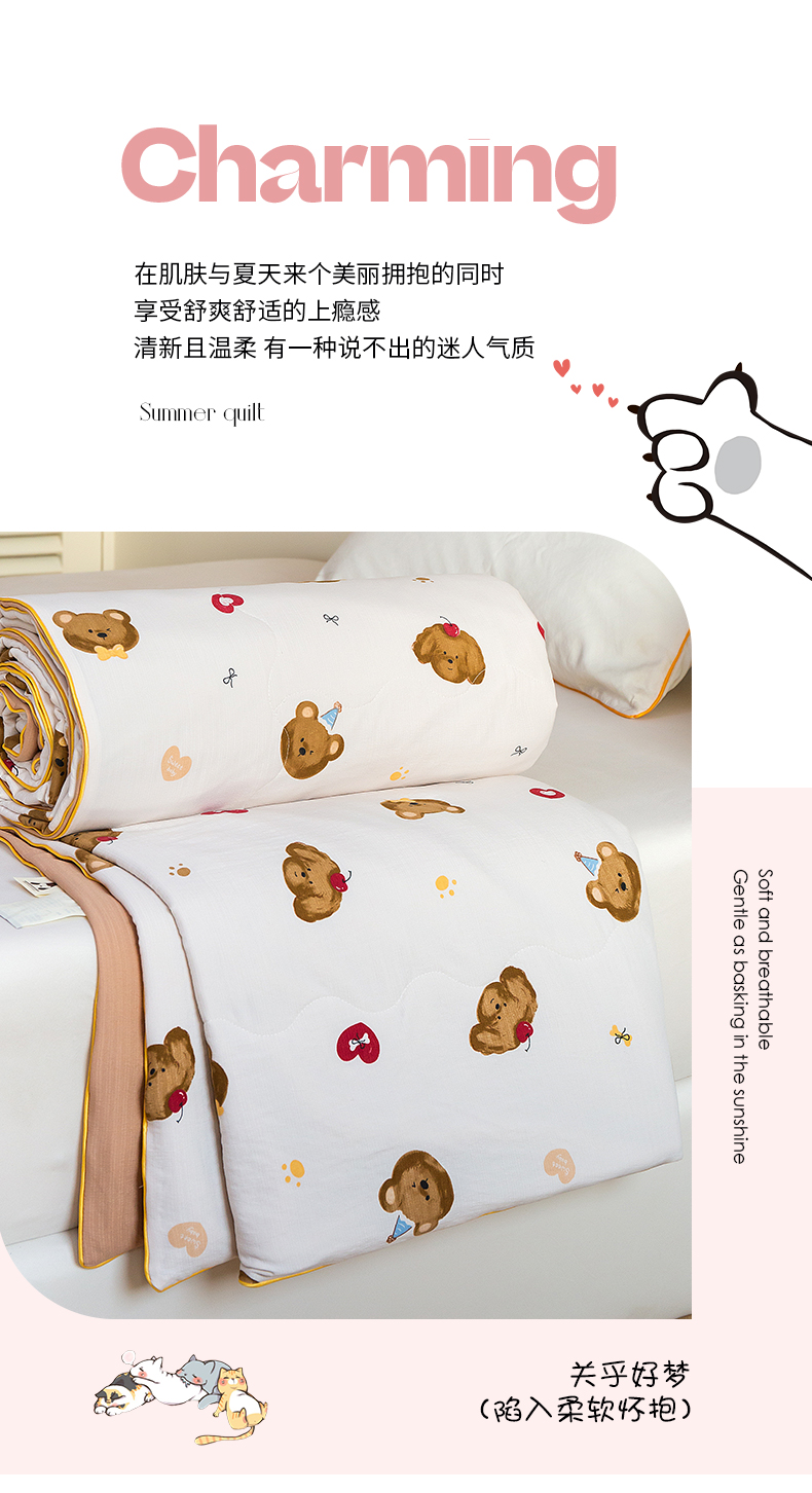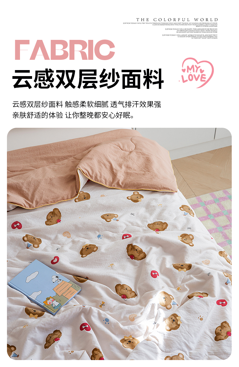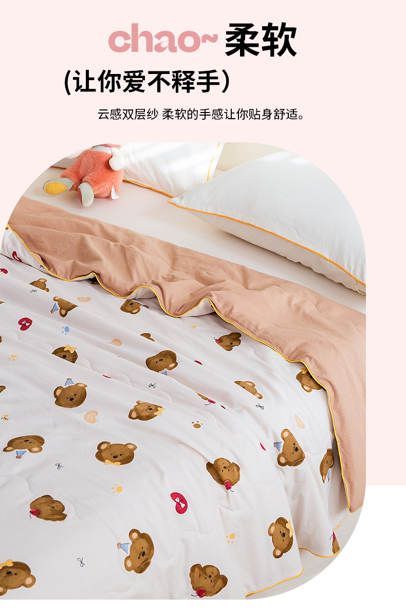 商品名称:艺菲阁家纺 2025新款卡通麻绳云感双层纱夏凉被 奇妙小熊米