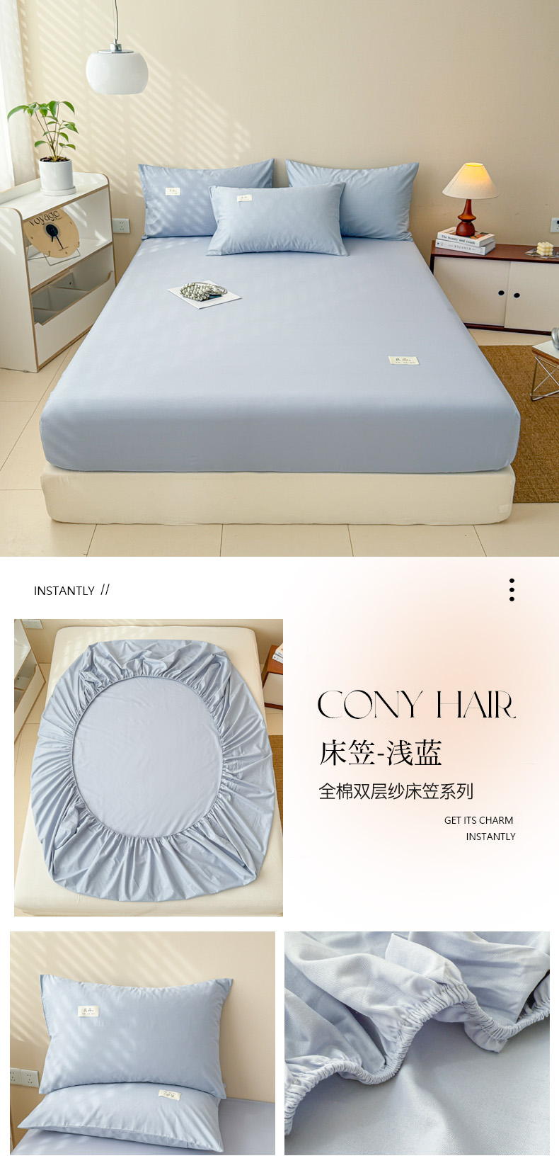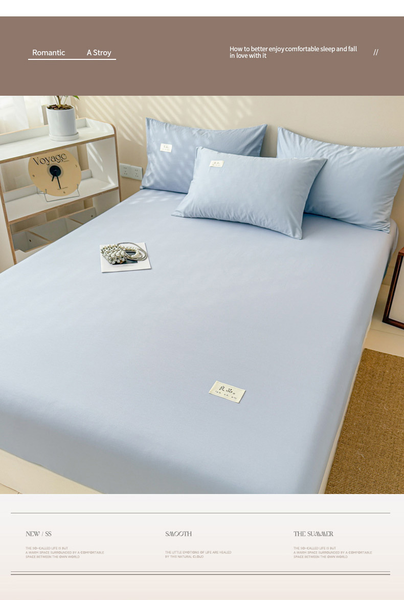 • 91家纺网 家纺一手货源 找家纺 眠博士 2025新款简约纯色纯棉40支单床笠系列 40支床笠-浅蓝