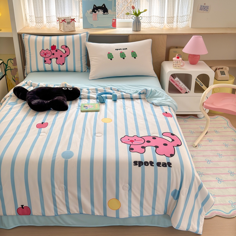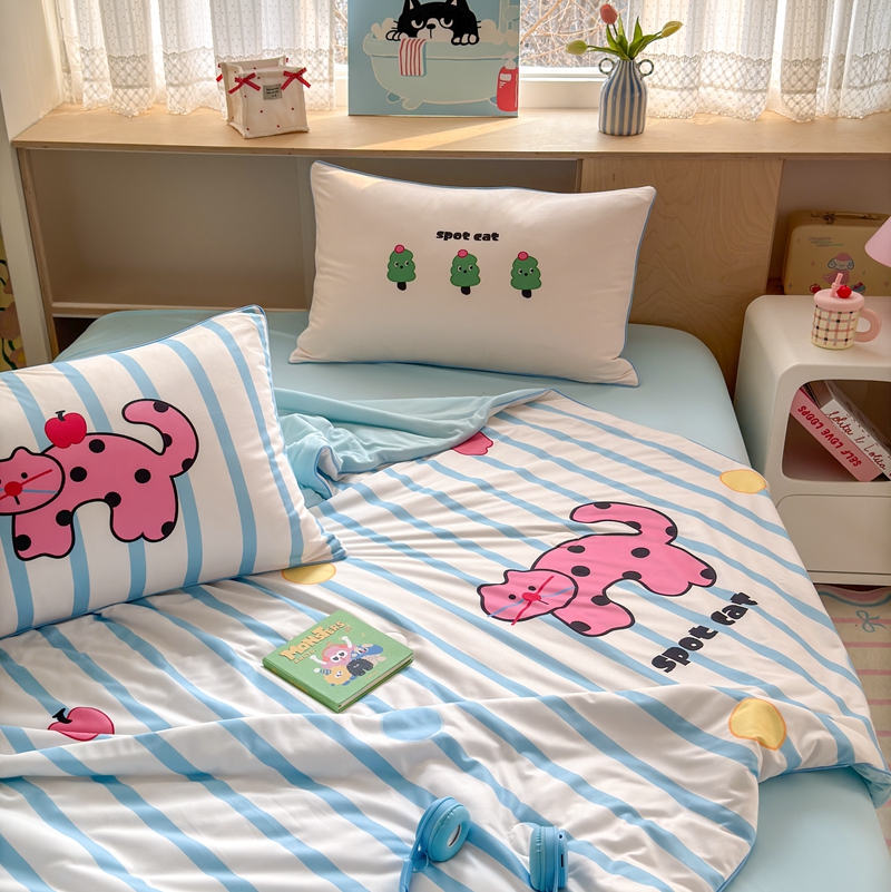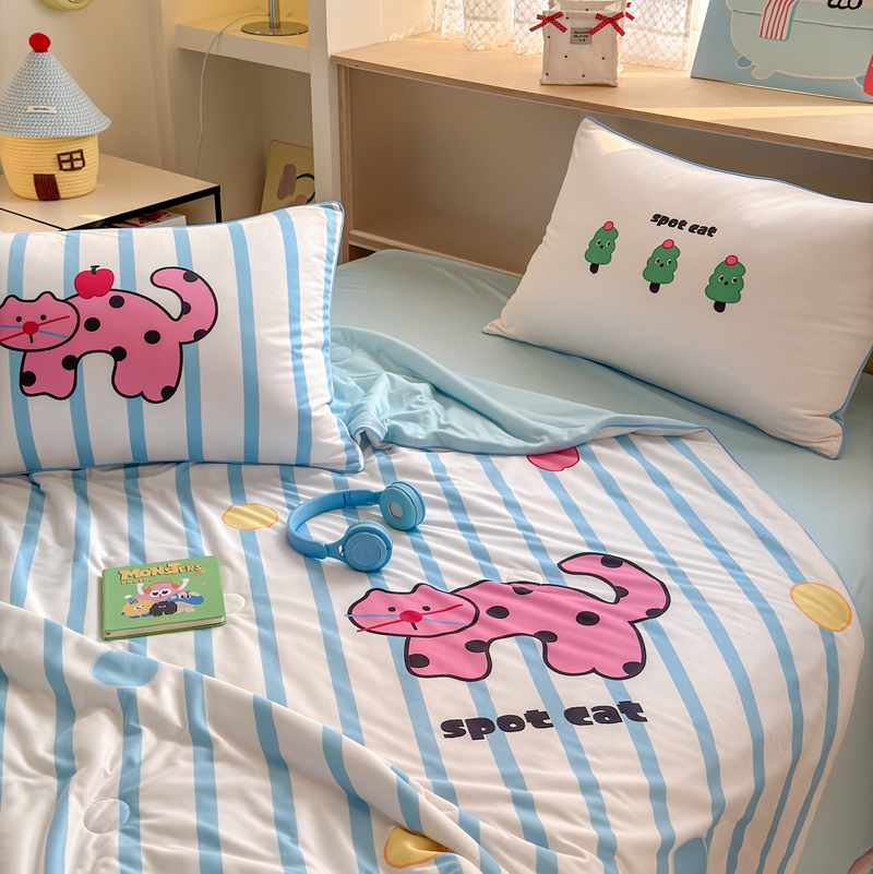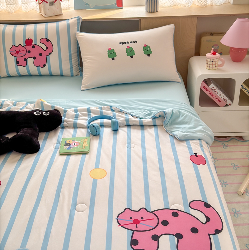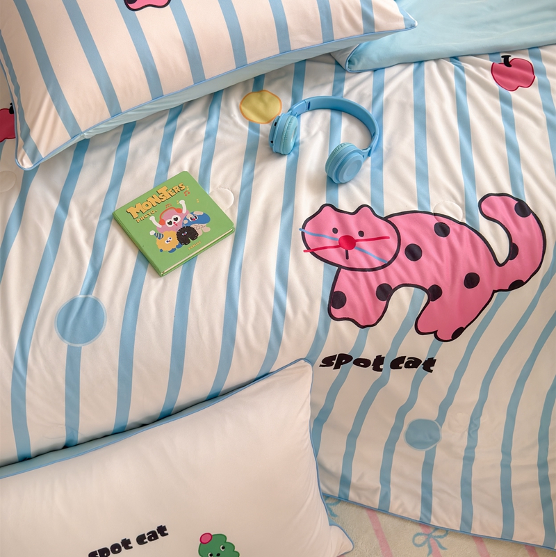 星期八 2025新款针织棉夏被四件套 波点小猫