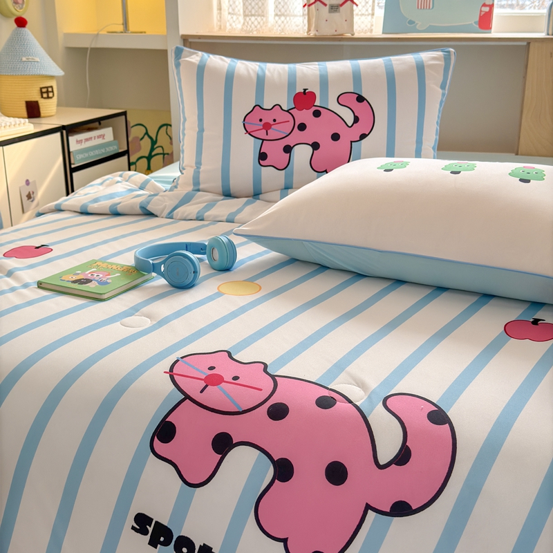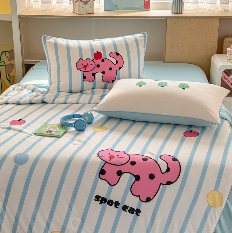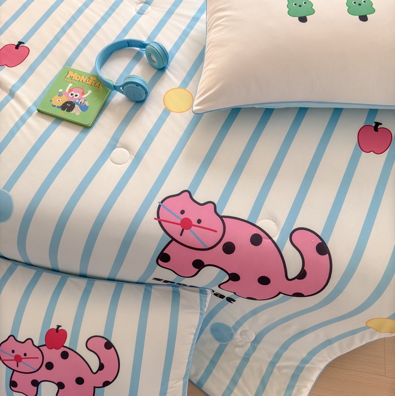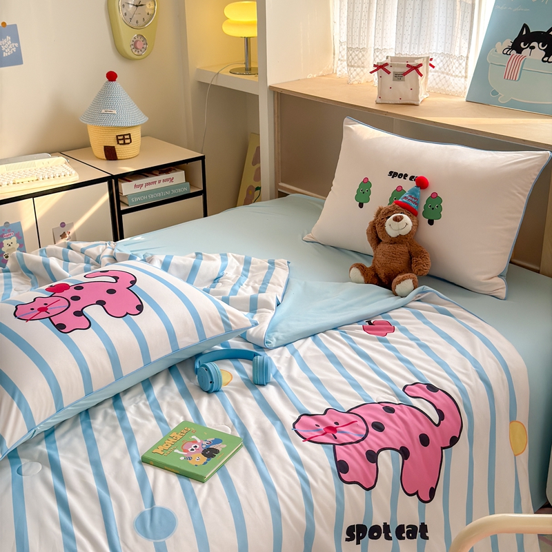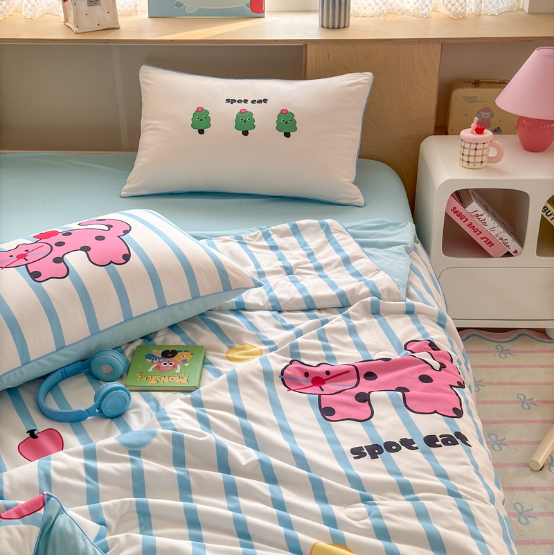 星期八 2025新款针织棉夏被四件套 波点小猫