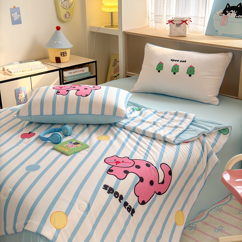 商品名称:星期八 2025新款针织棉夏被四件套 波点小猫