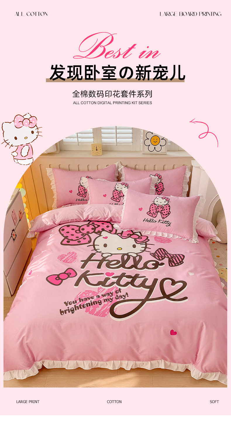 当前位置: 91家纺网 > 商品网购 > 床品套件 > 四件套 > 全棉普通四件套 > 玉元坊 2025新款三丽鸥系列数码印花纯棉全棉床裙三件套四件套-花边款 花边款-凯蒂宝贝
