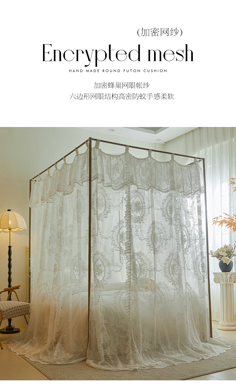 当前位置: 91家纺网 > 商品网购 > 床上用品 > 蚊帐 > 宫廷蚊帐 > 都市缘蚊帐 2025新款A902穿杆落地宫廷蚊帐烤漆支架款 902薇尔庄园-奶油白