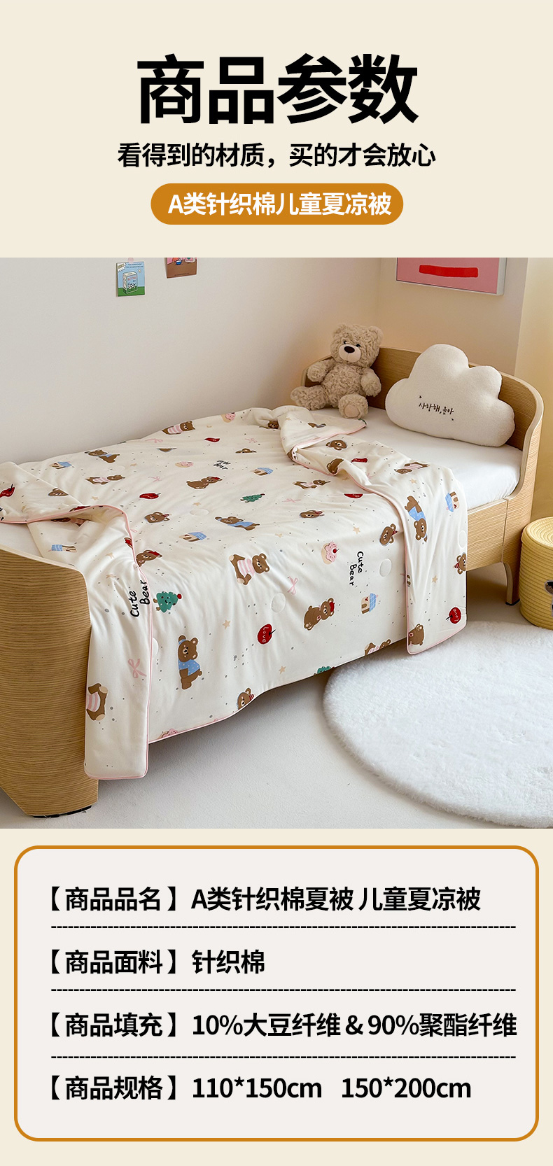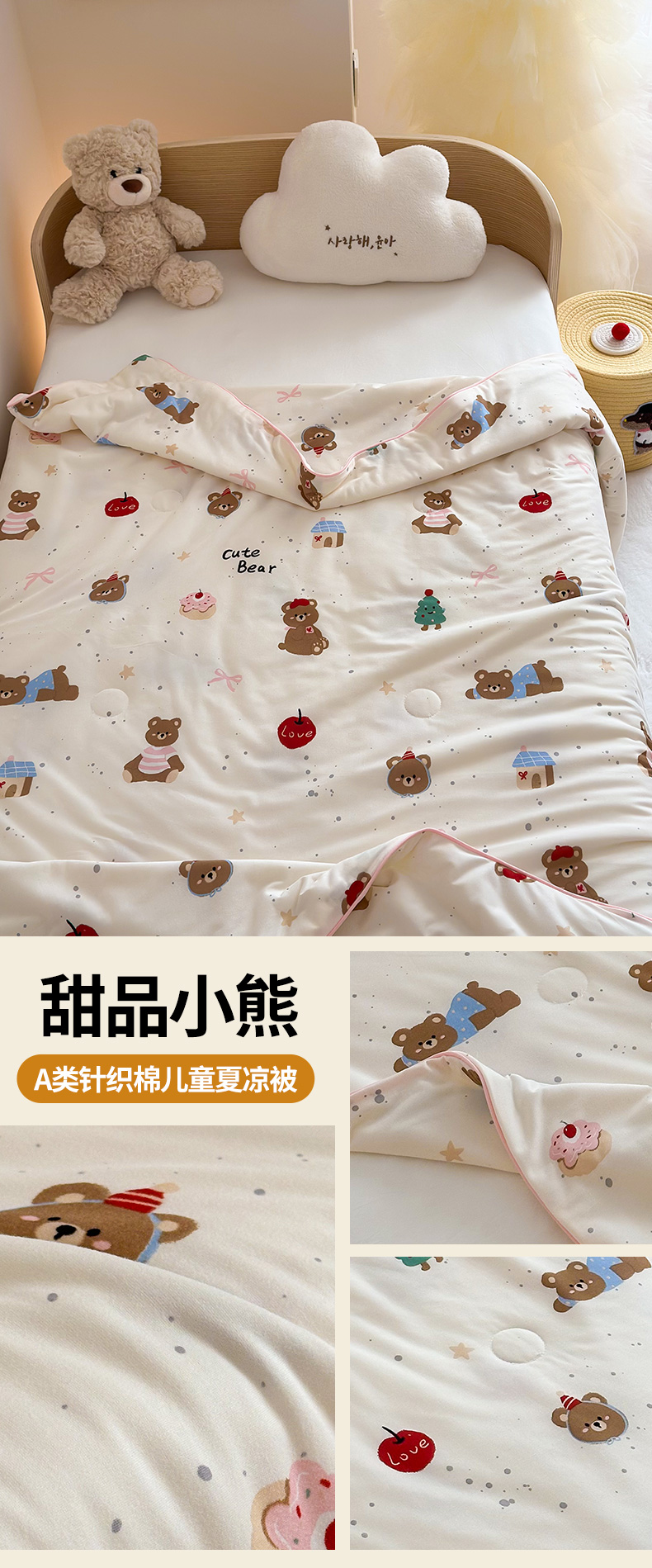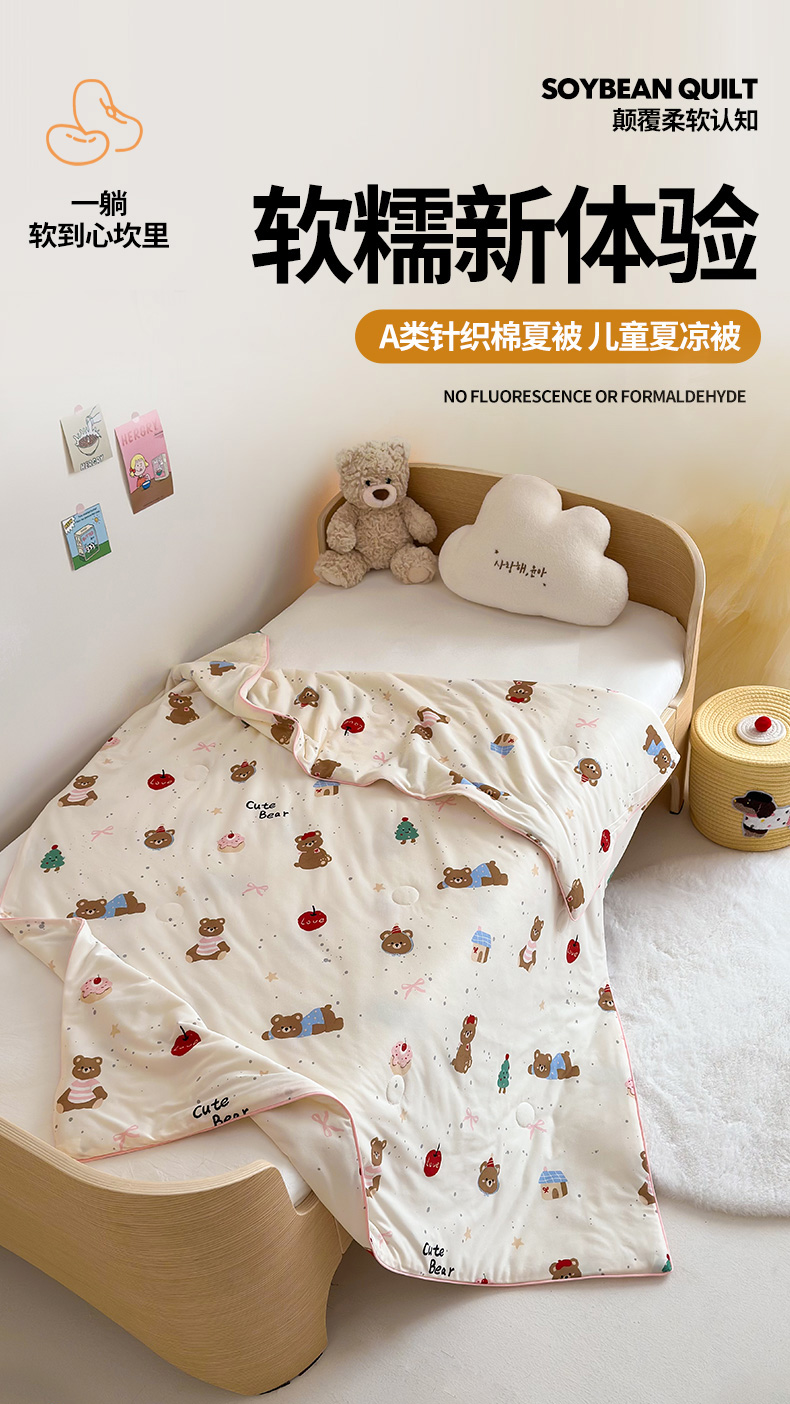 商品名称:嗨生活 2025年新款针织棉夏被 儿童夏被 幼儿园夏凉被 甜品小熊