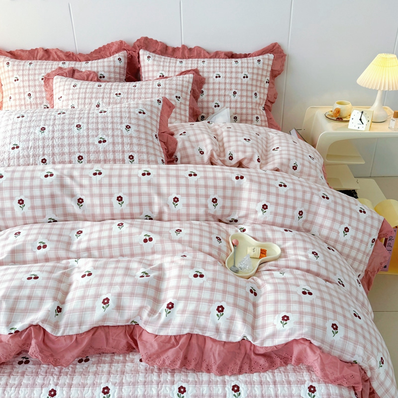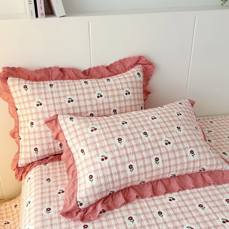 添越 2024小清新韩版蕾丝款花边纯棉夹棉床盖三件套全棉爱意时光蕾丝款,爱意时光蕾丝款