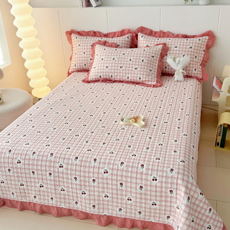 添越 2024新款纯棉砂洗床盖沁心花语