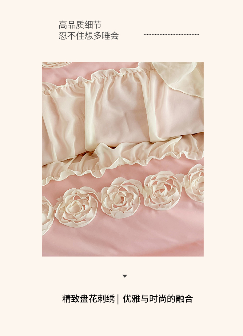 当前位置: 91家纺网 > 商品网购 > 床品套件 > 四件套 > 水洗棉四件套 > 富盛家纺 2025新款水洗亲肤棉盘花刺绣床裙款四件套公主风四件套甜蜜蜜系列 甜蜜蜜-豆沙