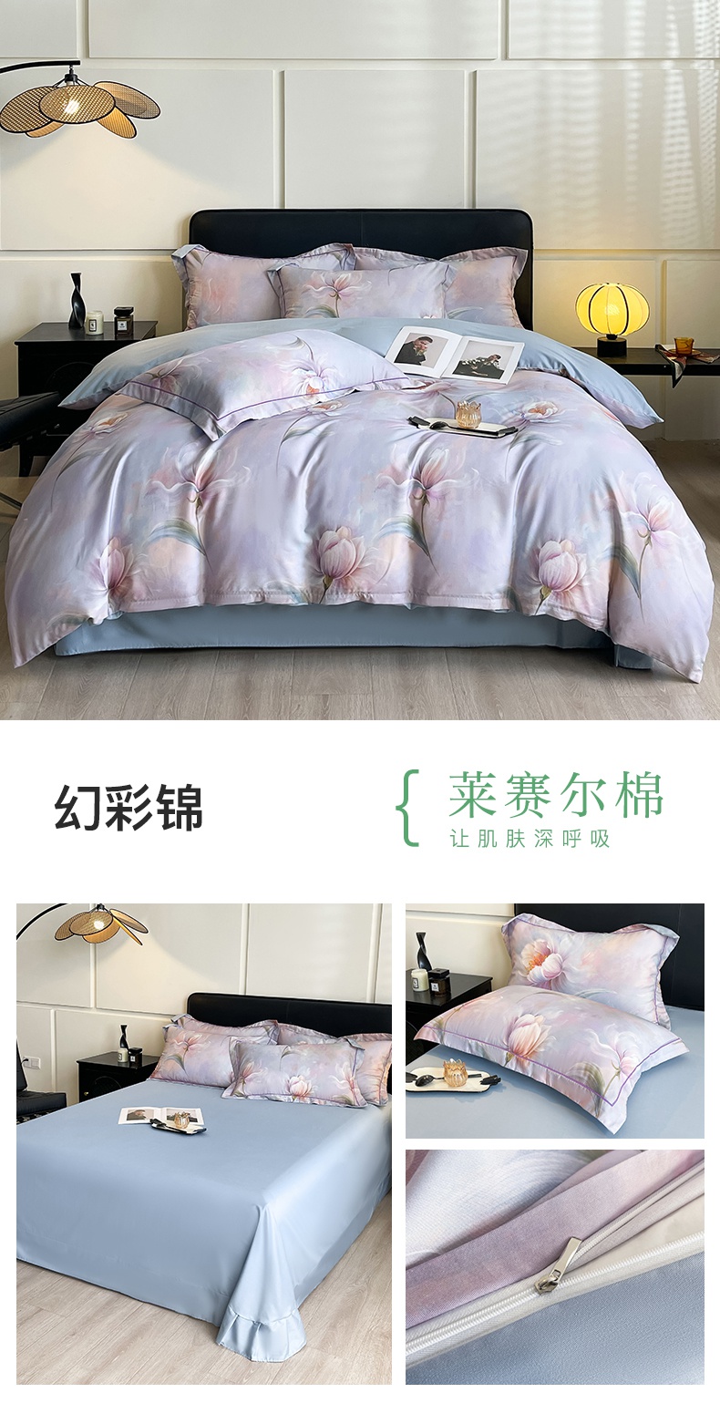 商品名称:帛美家纺 2025新款40S莱赛尔天丝棉数码印花四件套 丽格