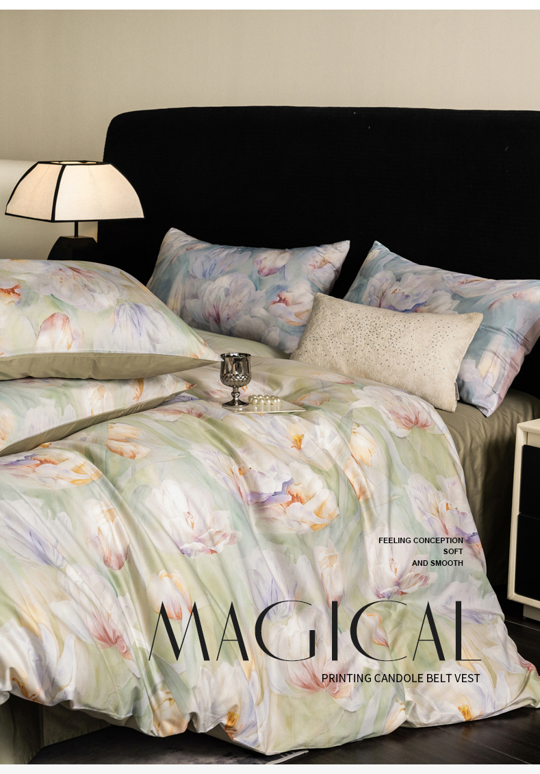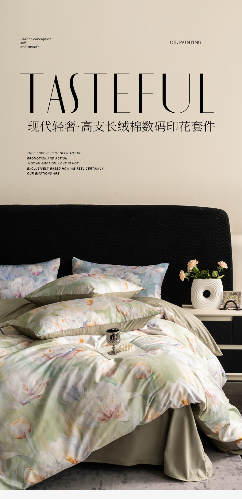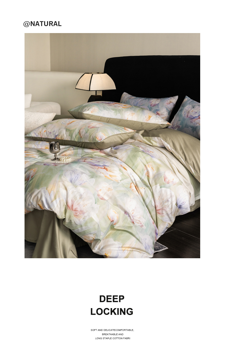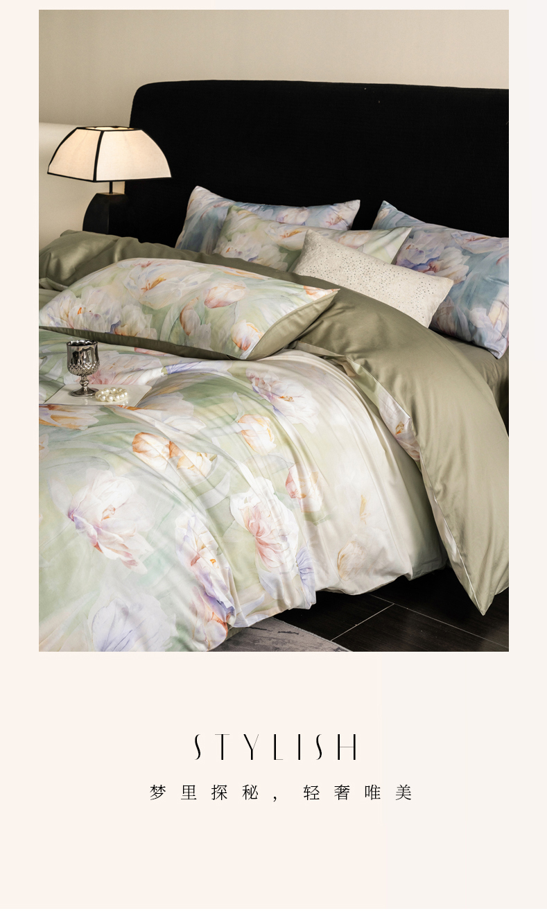 立奥被业 2025新款60S数码印花四件套四件套 百合绿
