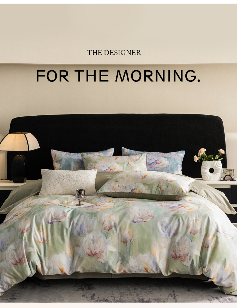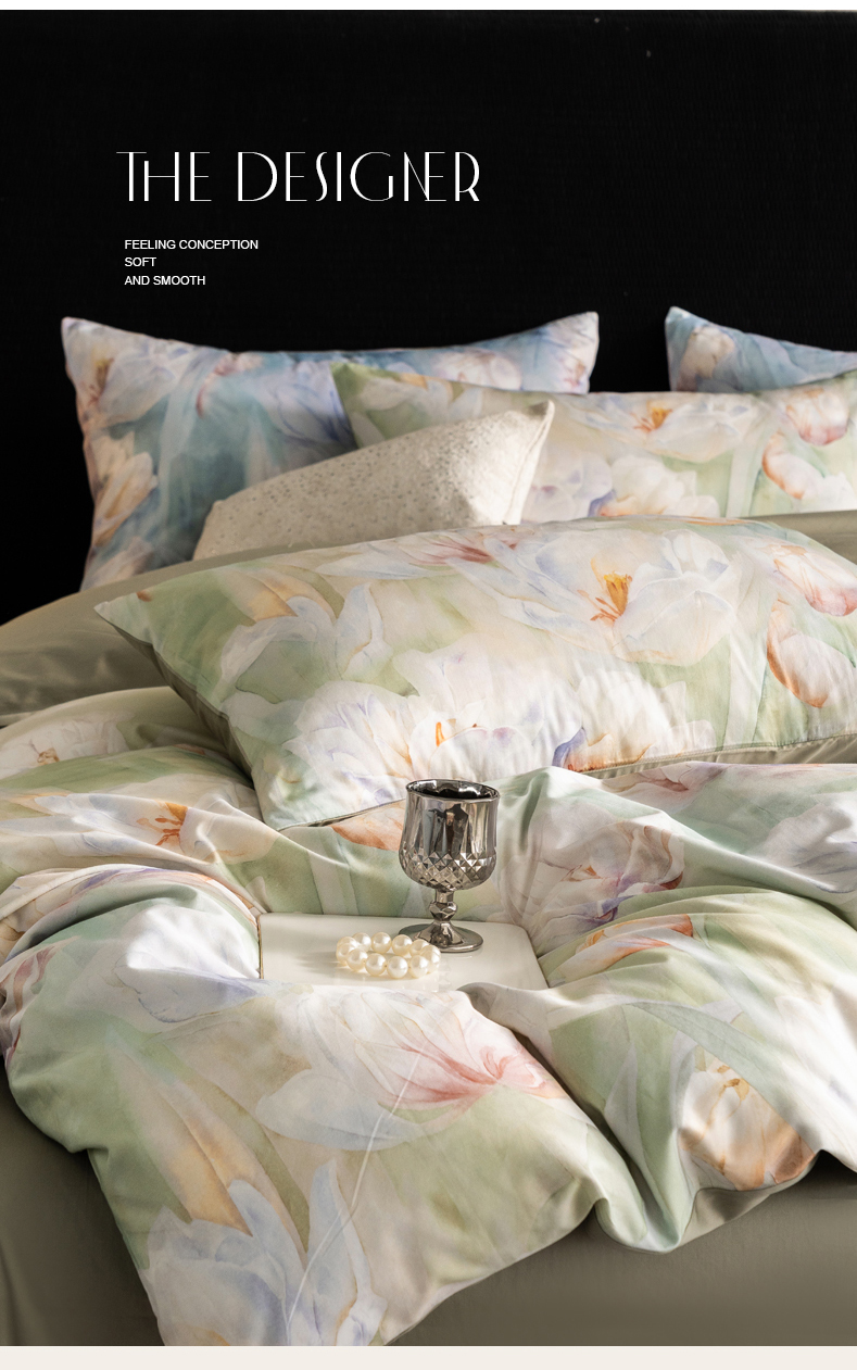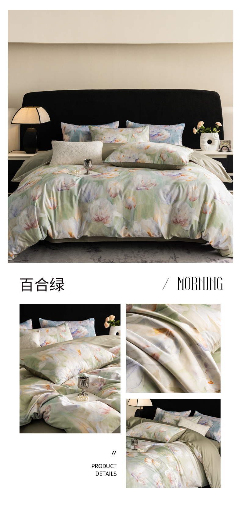 商品名称:立奥被业 2025新款60S数码印花四件套四件套 百合绿