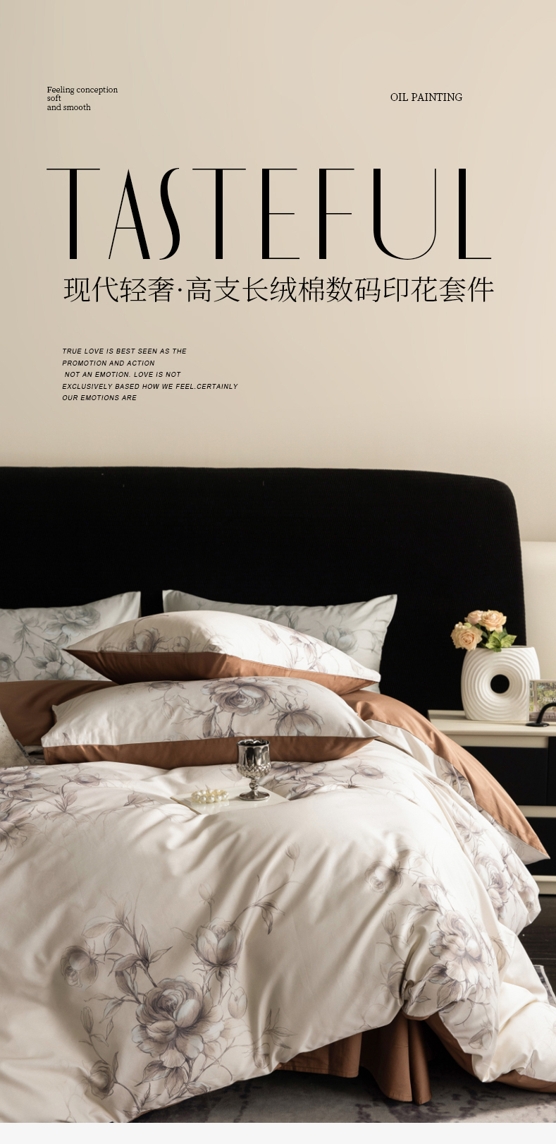 商品名称:立奥被业 2025新款60S数码印花四件套四件套 玫瑰咖