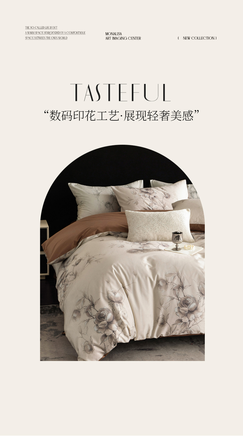 立奥被业 2025新款60S数码印花四件套四件套 玫瑰咖