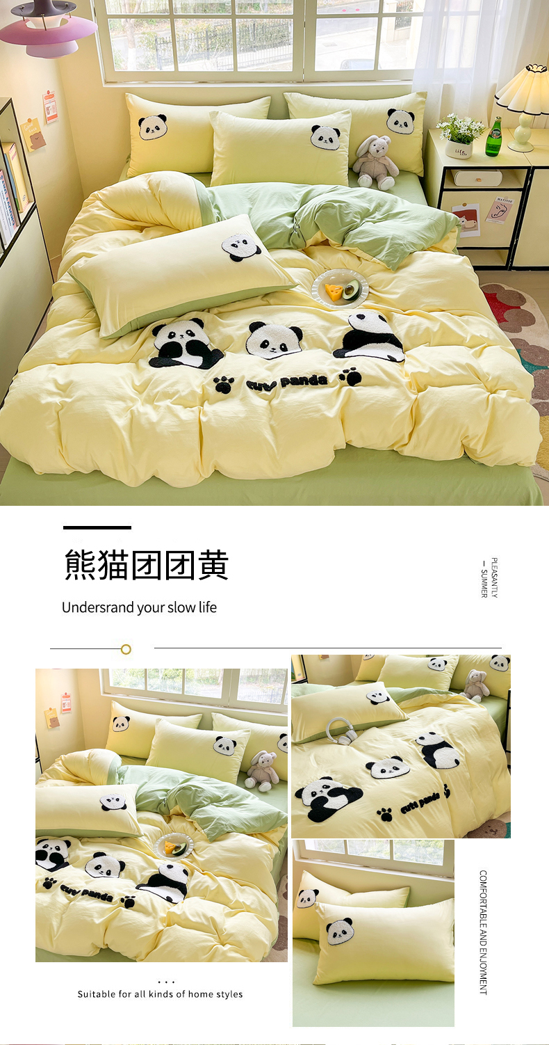 当前位置: 91家纺网 > 商品网购 > 床品套件 > 四件套 > 水洗棉四件套 > N先生+V 13814689556 发大图/买家秀 2025新款超柔水洗棉毛巾绣四件套--熊猫团团系列 熊猫团团黄