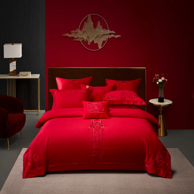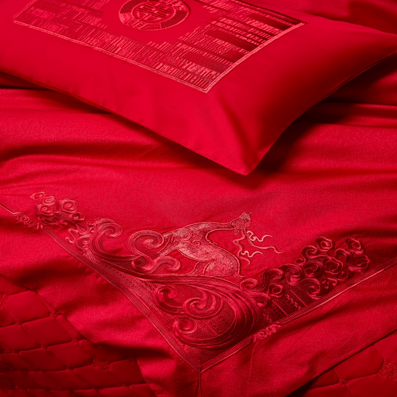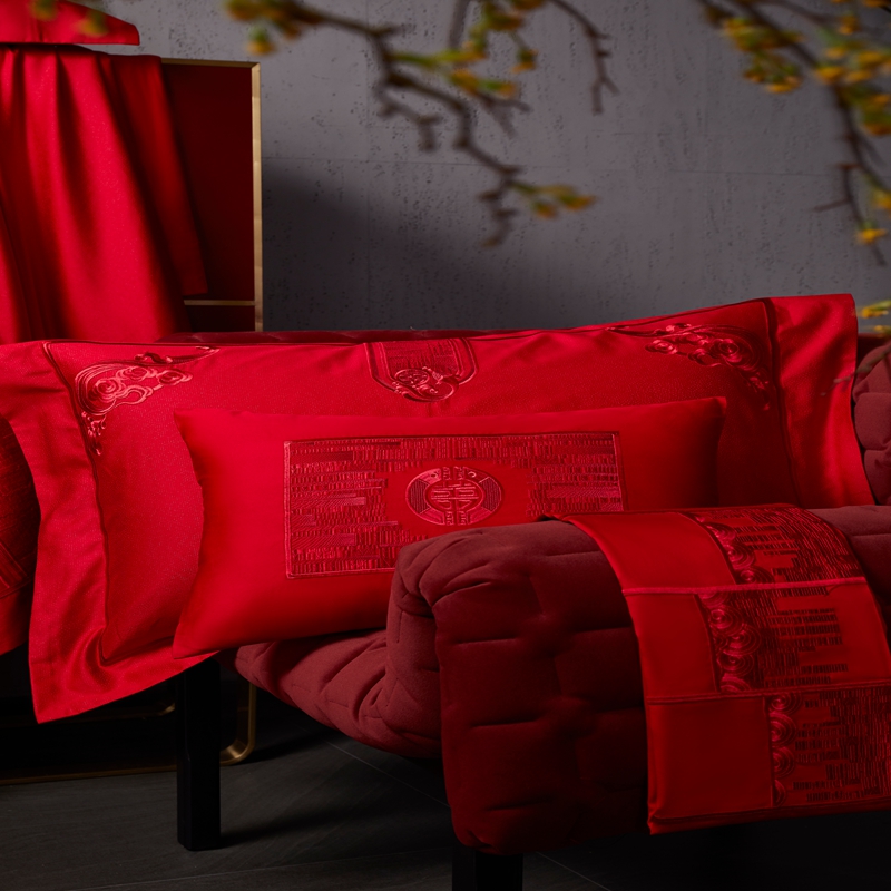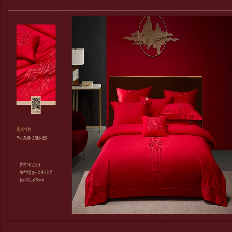 当前位置: 91家纺网 > 商品网购 > 床品套件 > 四件套 > 全棉普通四件套 > 爱情故事2025新款婚庆新品 锦绣红妆