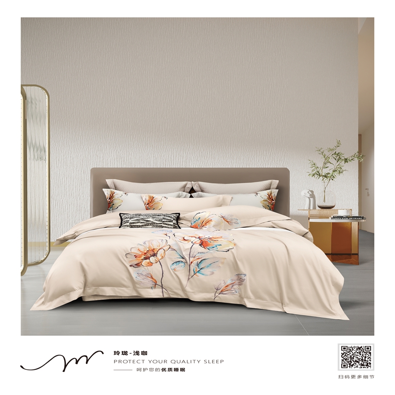 商品名称:爱情故事2025春夏居家新品四件套 玲珑-浅咖