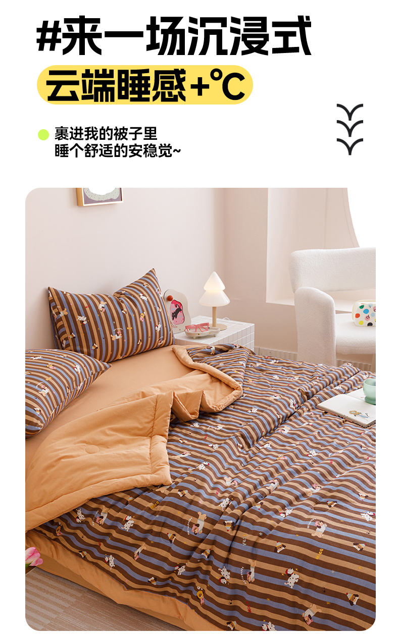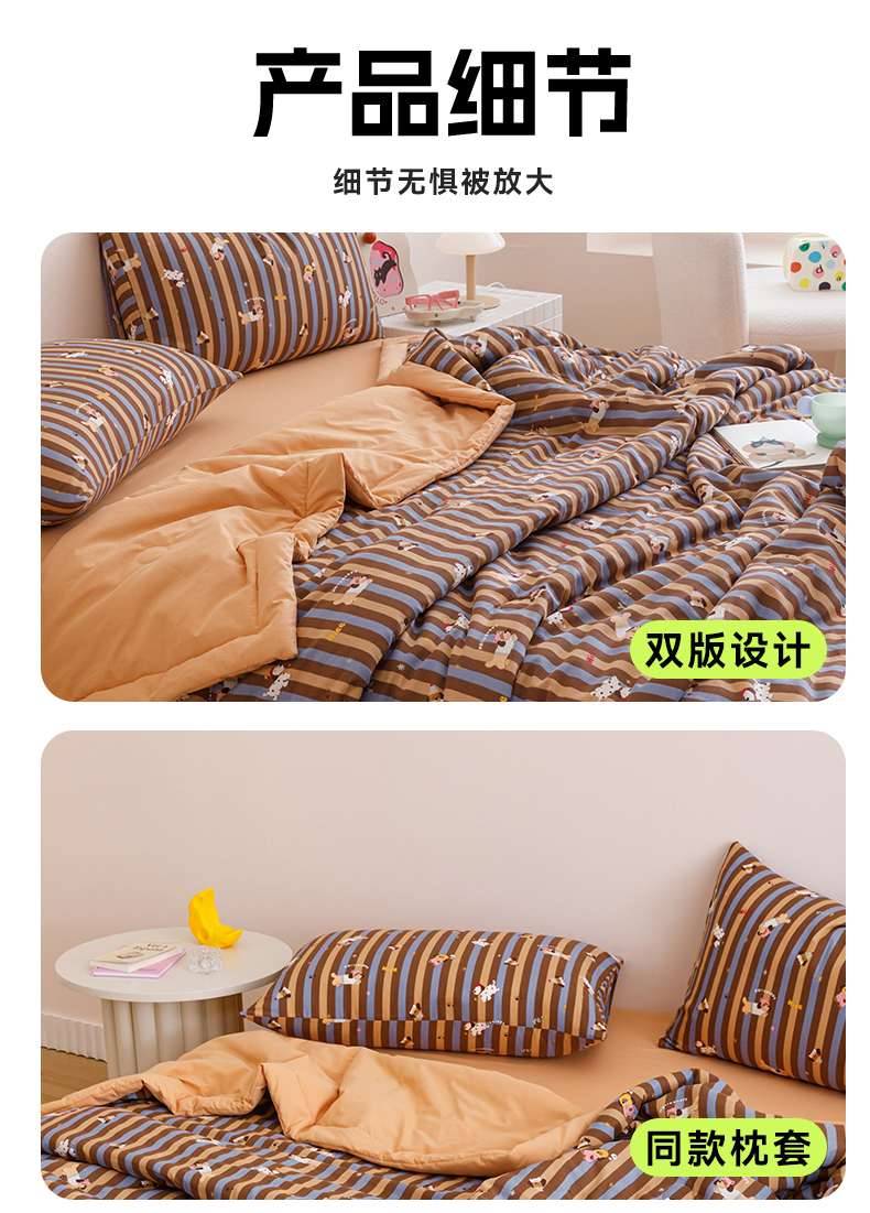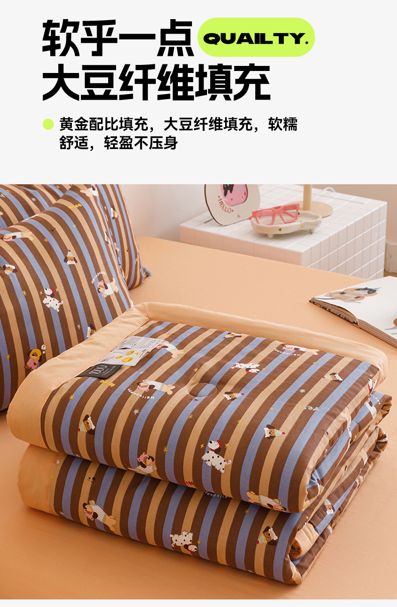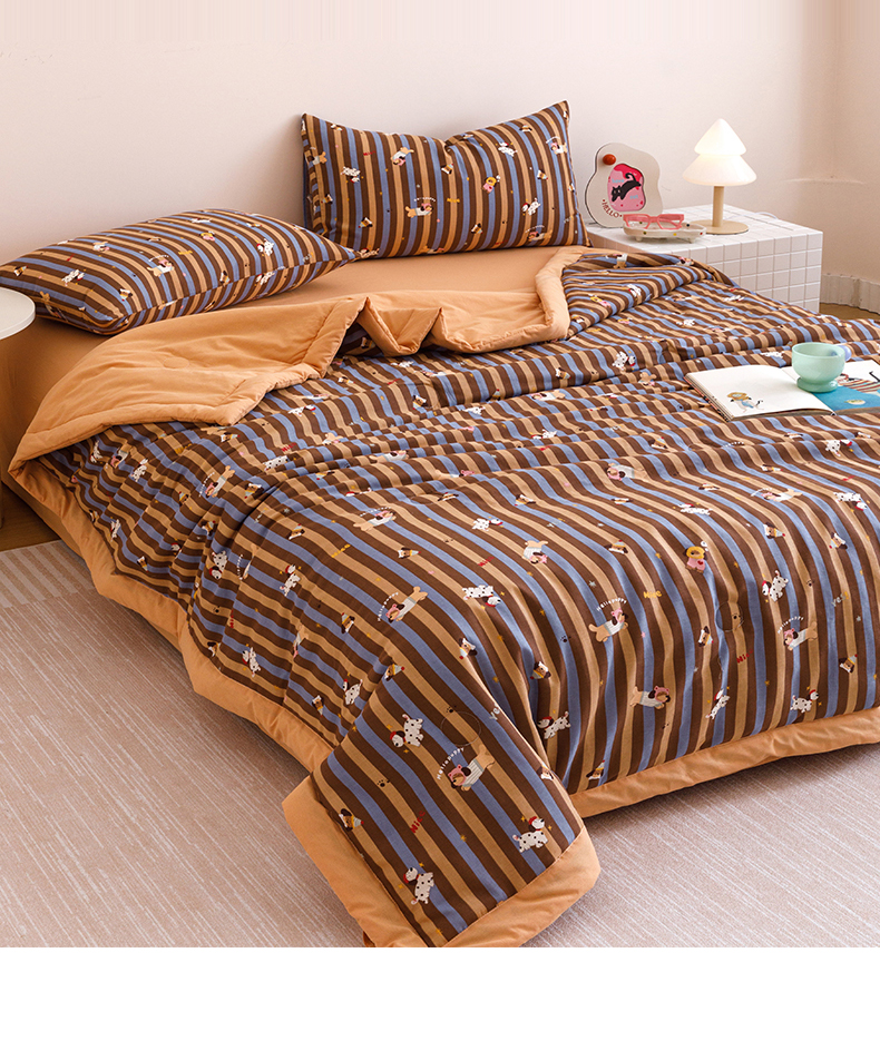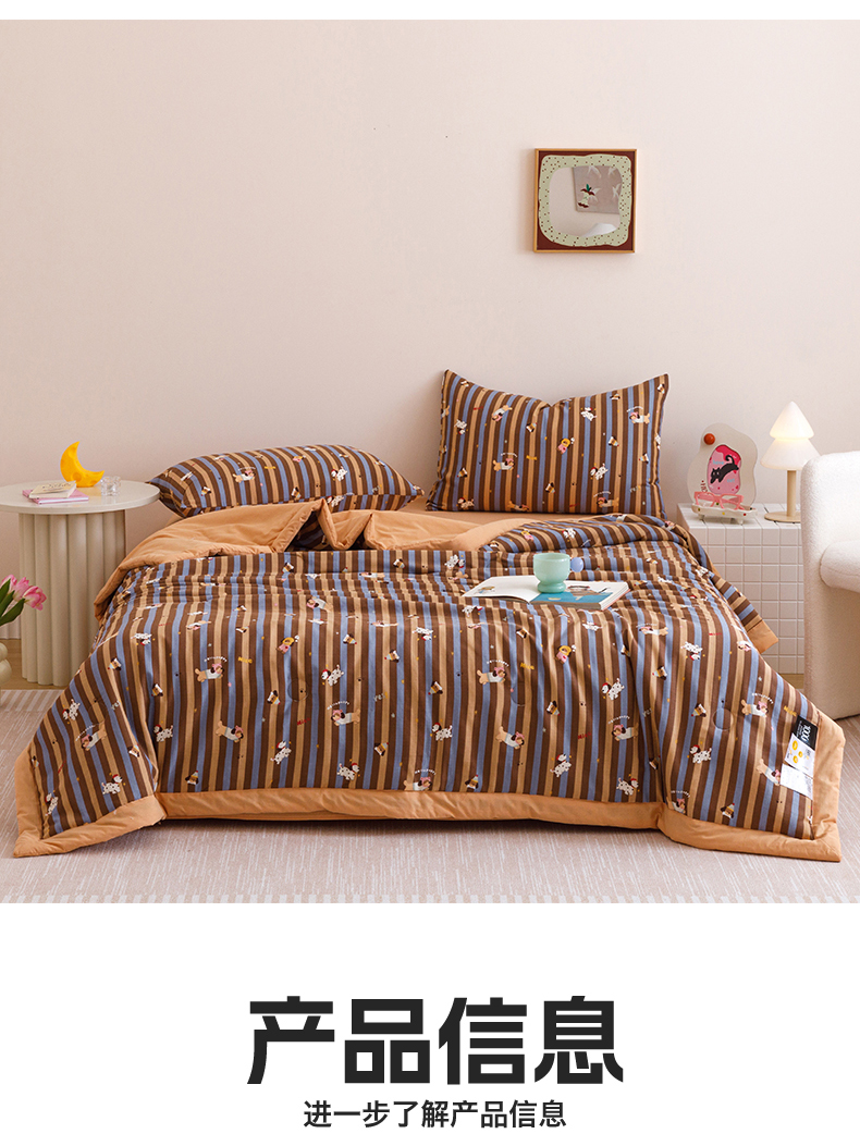 • 91家纺网 家纺一手货源 找家纺 2025新款全棉双层纱夏被 被子被芯 竖条腊肠狗