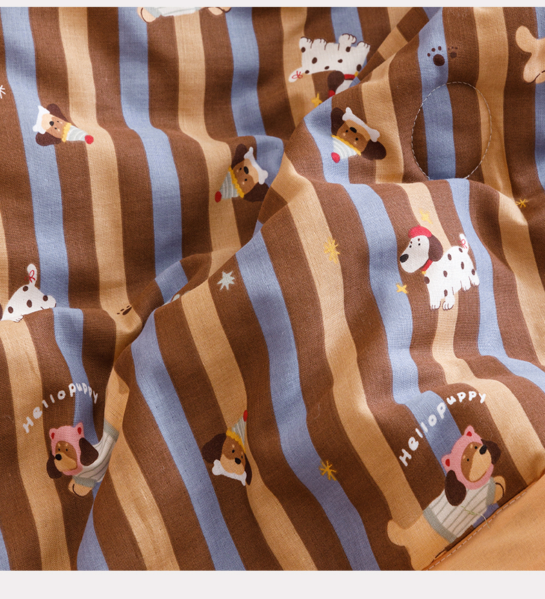 2025新款全棉双层纱夏被 被子被芯 竖条腊肠狗