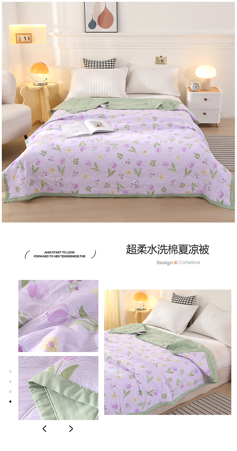 诗雅纺织 2025新款超柔水洗棉夏凉被空调被 紫色玫瑰