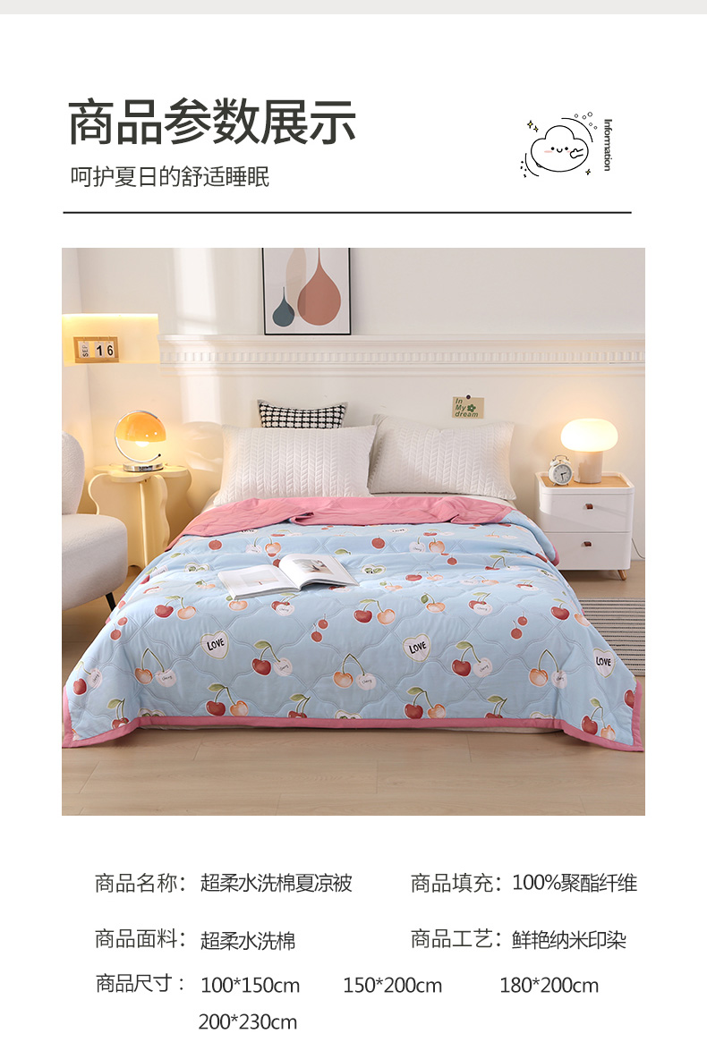 (总)诗雅 2024年新款水洗棉夏被超声波压花礼品被,三只小鸭,柠檬,樱桃,紫色玫瑰,绿色小花,花心,蓝色小花,寻觅,心心相印,陌上花开