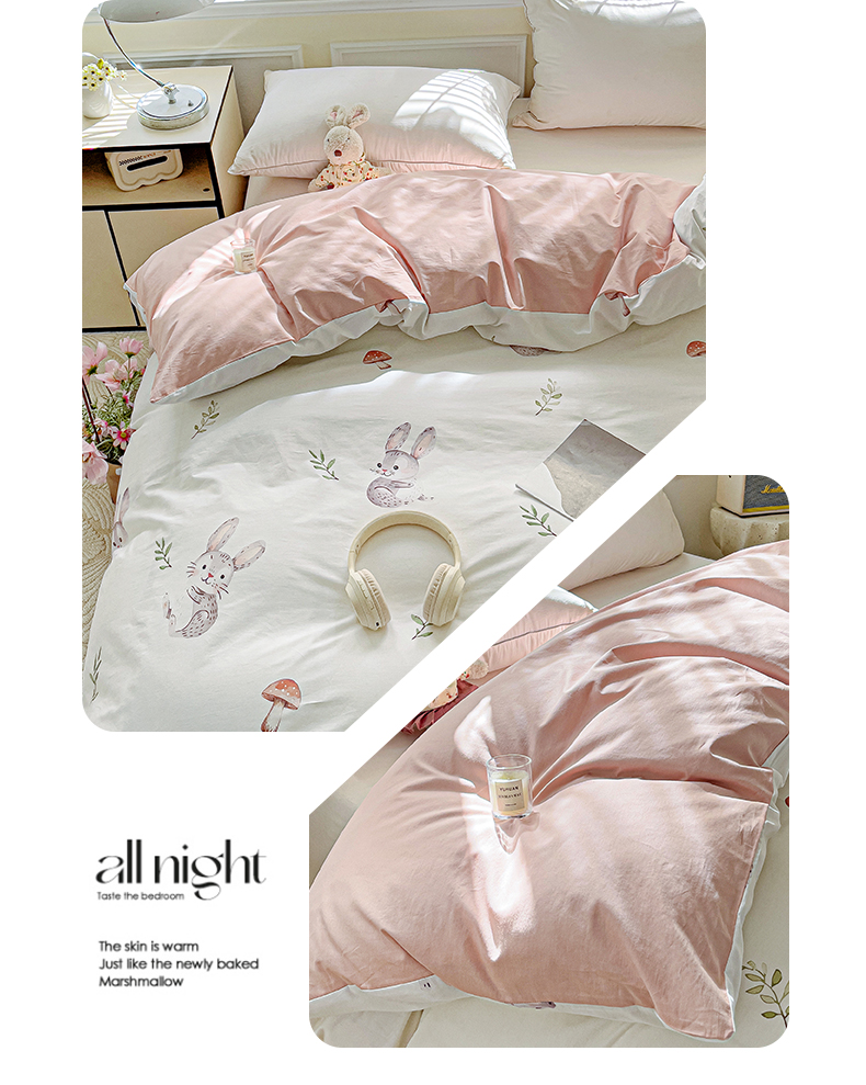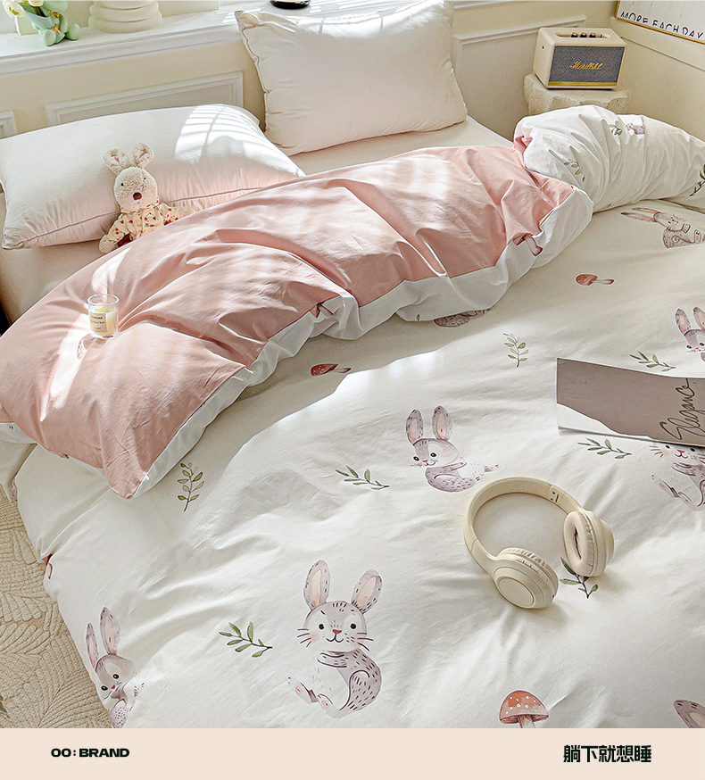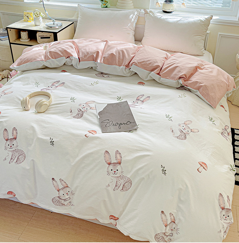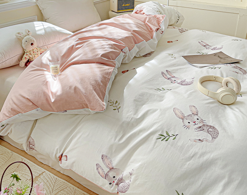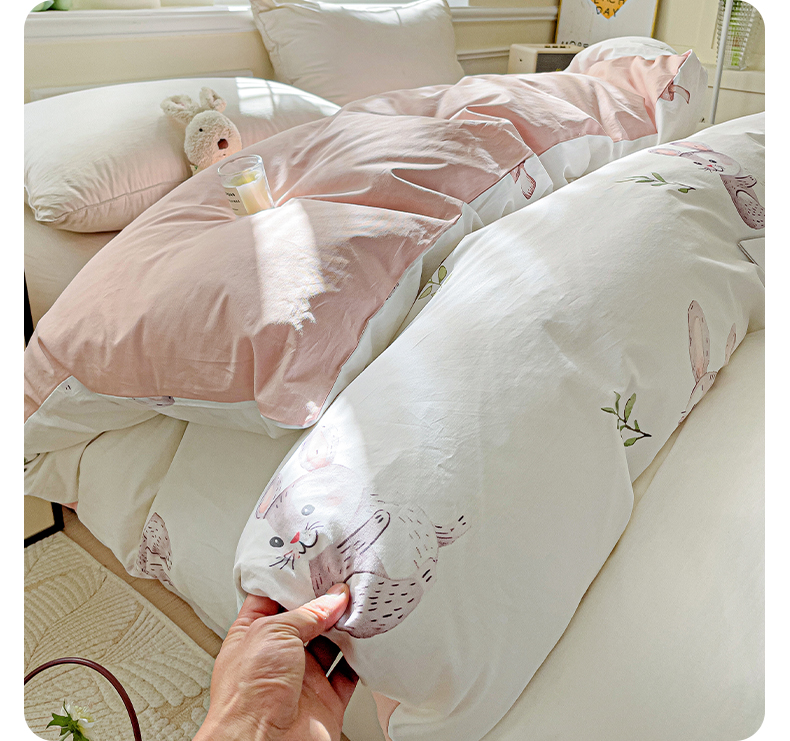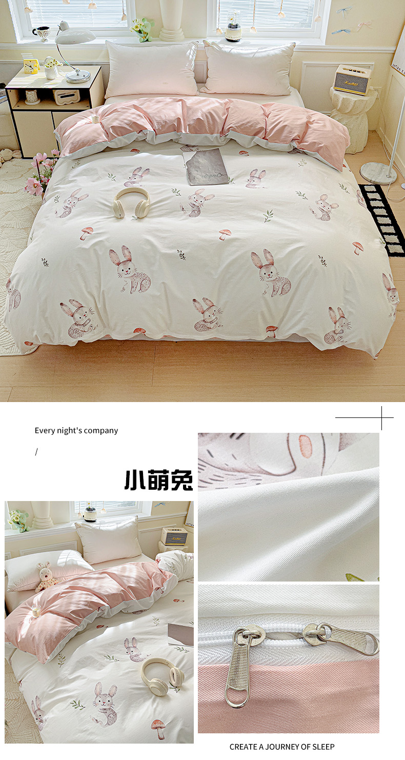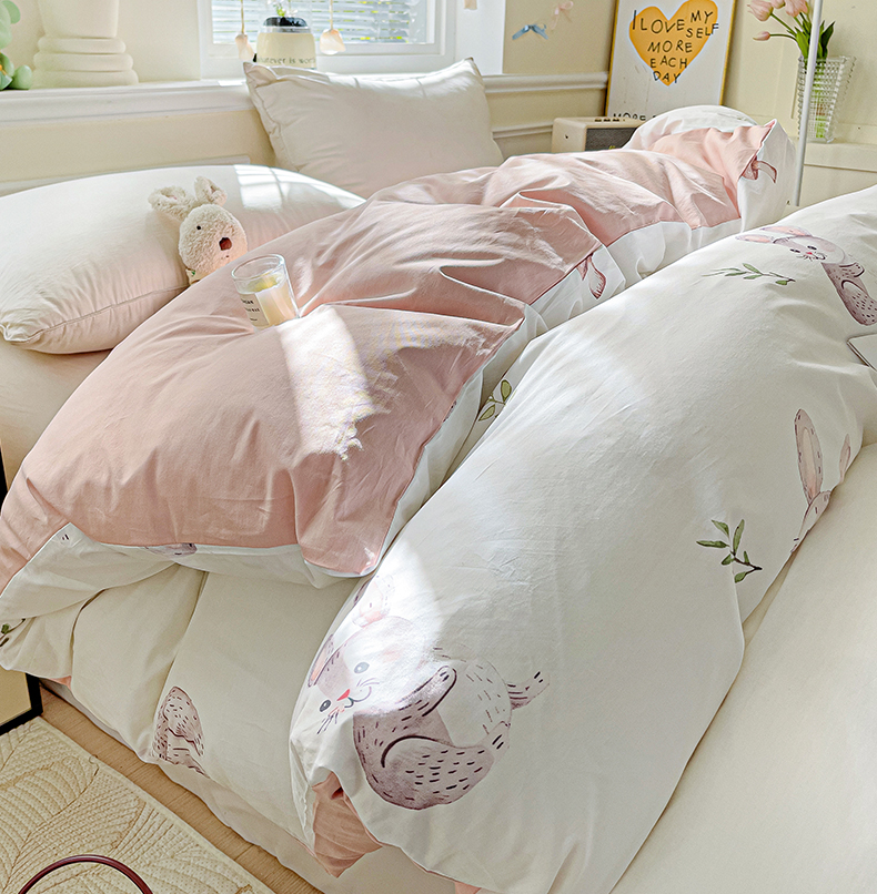 大柏树 2025新款全棉13376印花四件套系列(可定制)-单被套小萌兔