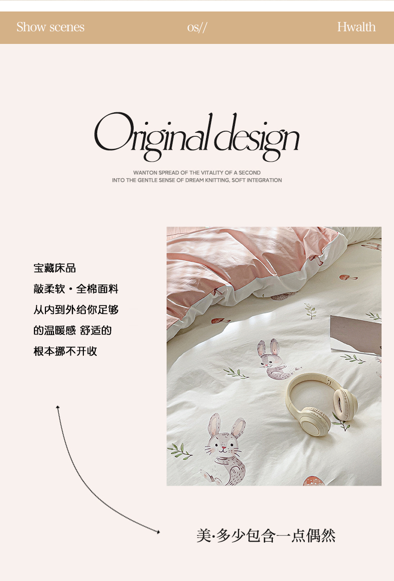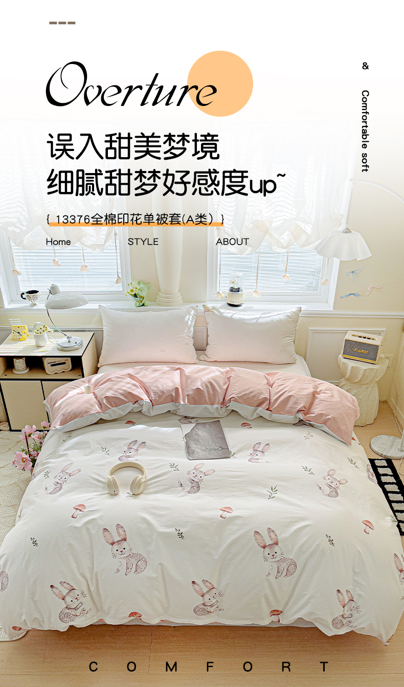 当前位置: 91家纺网 > 商品网购 > 床上用品 > 被套 > 大柏树 2025新款全棉13376印花四件套系列(可定制)-单被套小萌兔