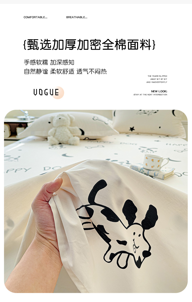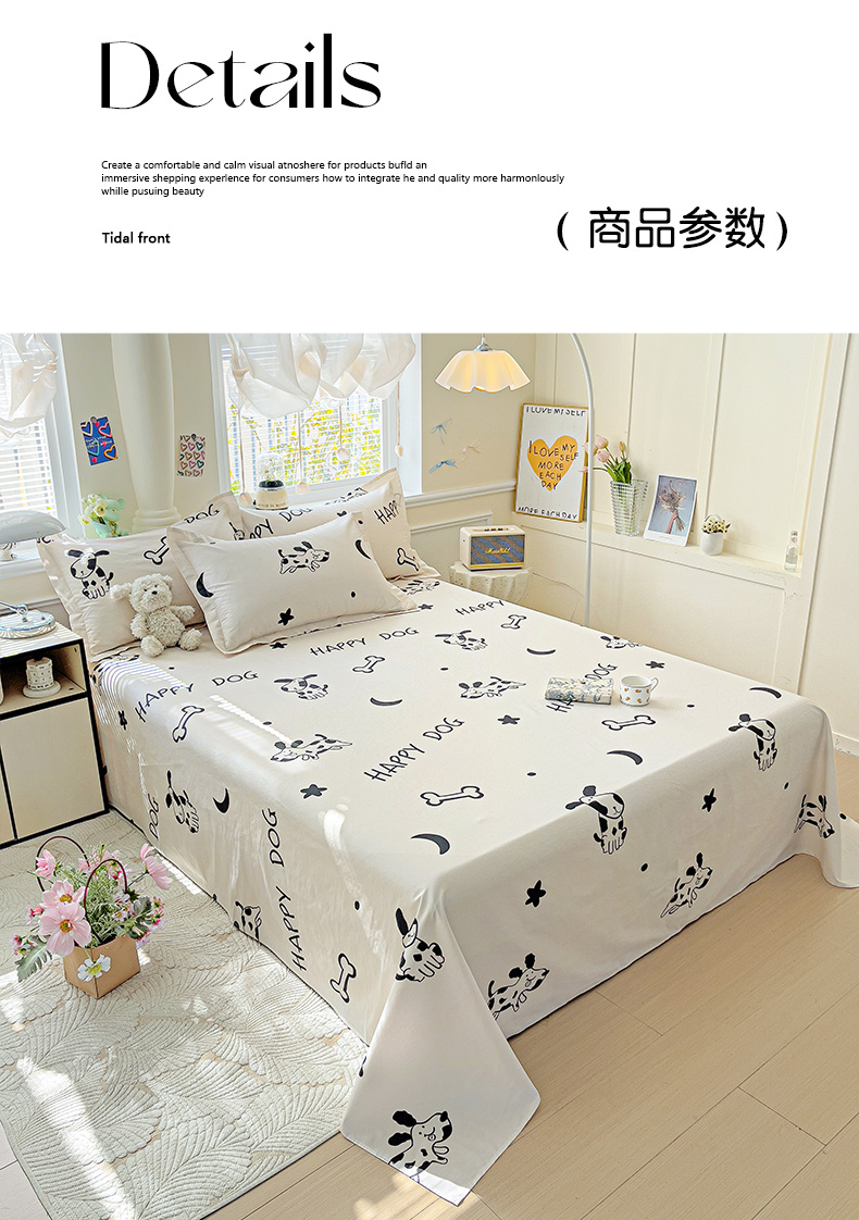 商品名称:大柏树 2025新款全棉13376印花四件套系列(可定制)-单床单可蒂狗-米