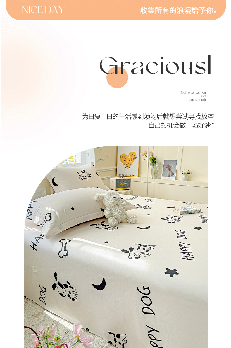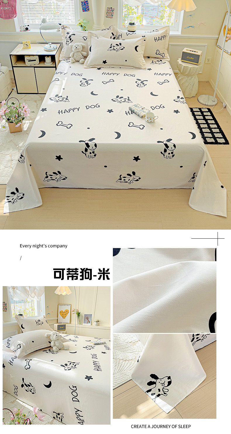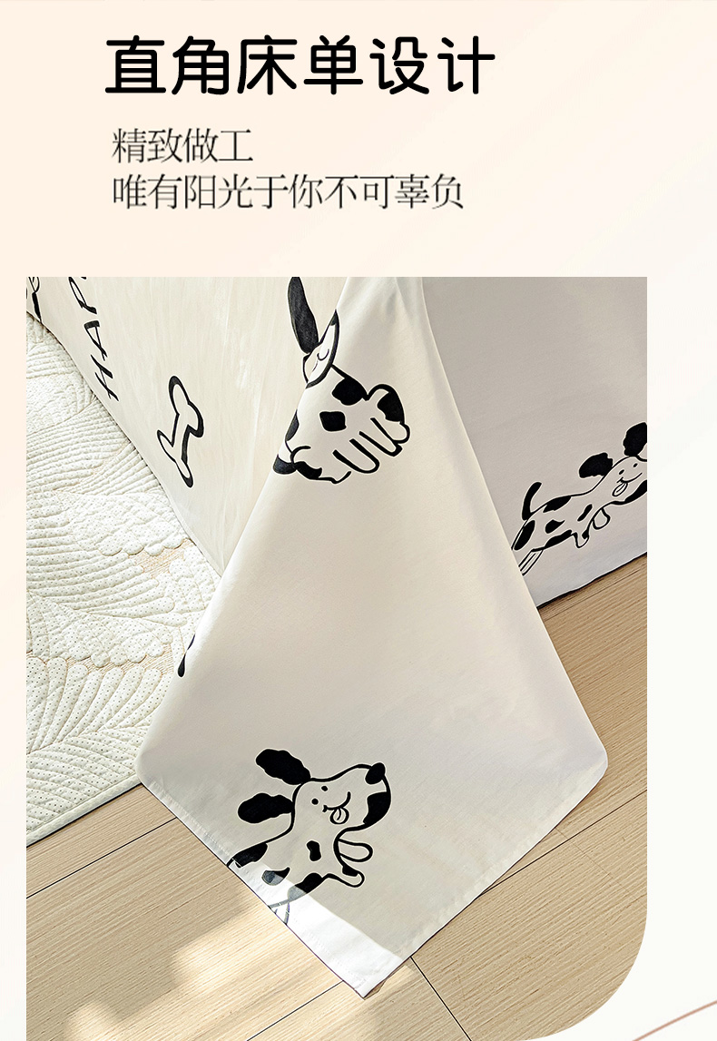 大柏树 2025新款全棉13376印花四件套系列(可定制)-单床单可蒂狗-米