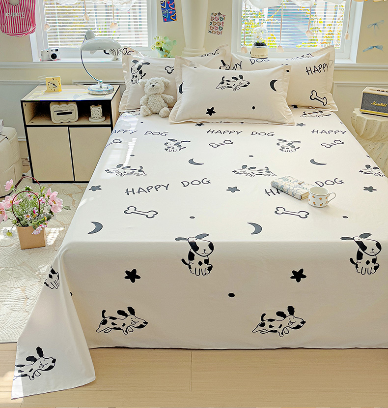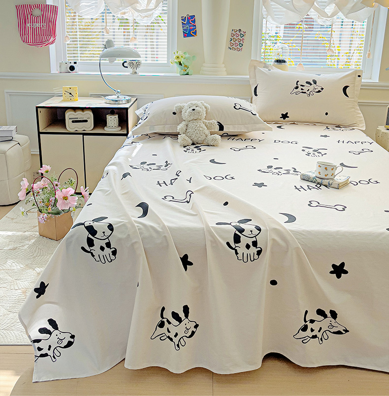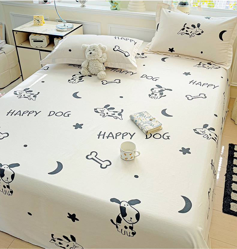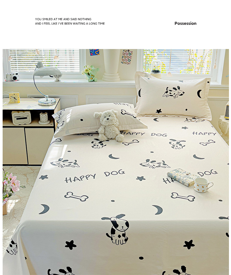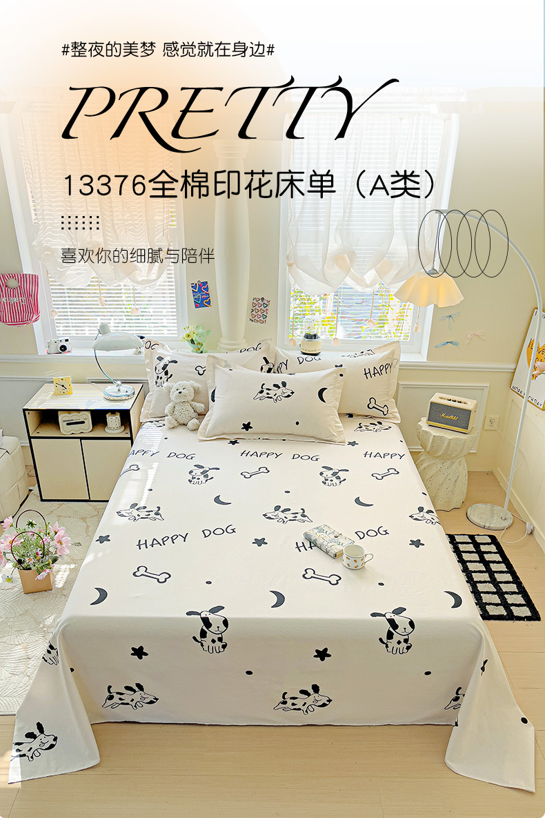 大柏树 2025新款全棉13376印花四件套系列(可定制)-单床单可蒂狗-米