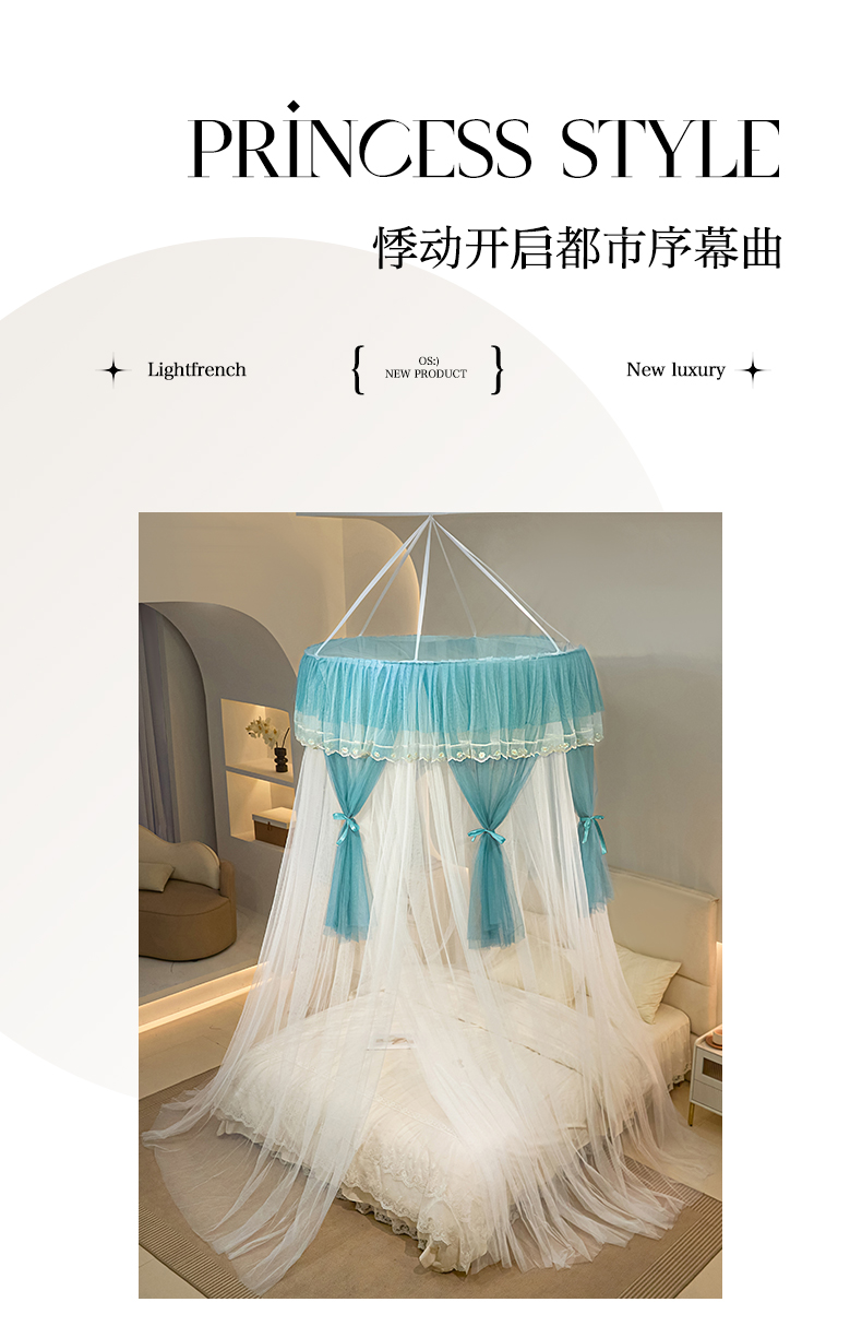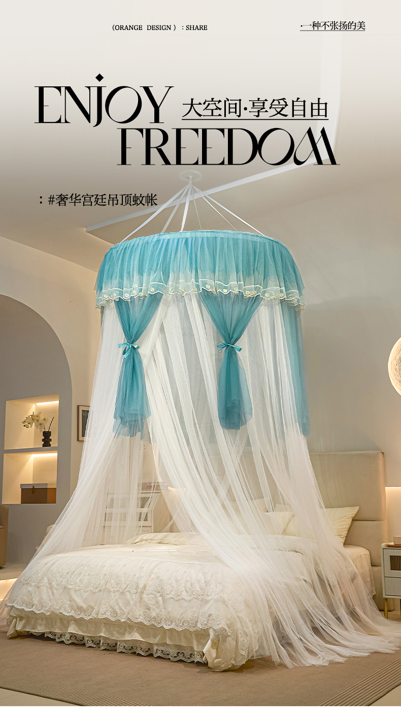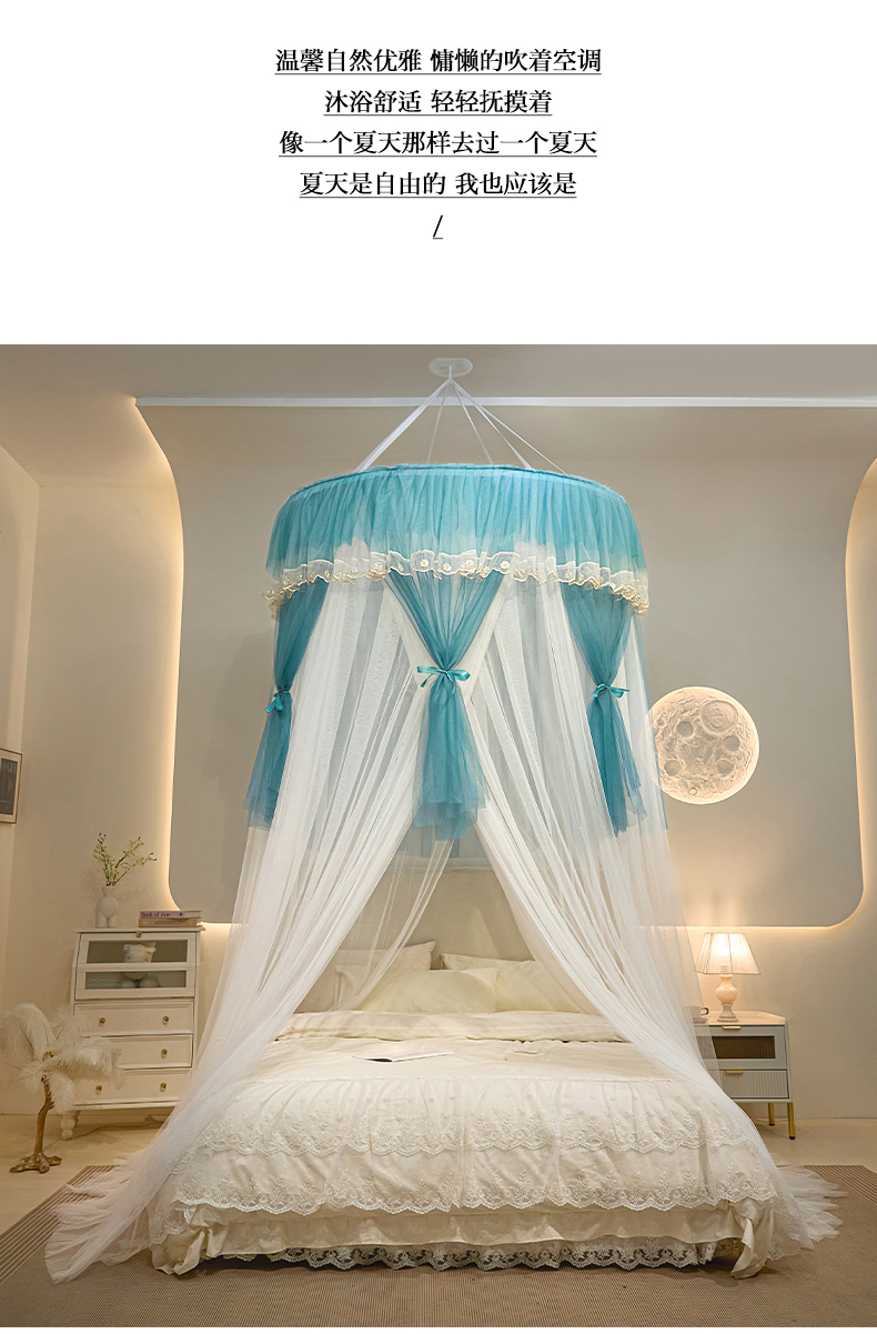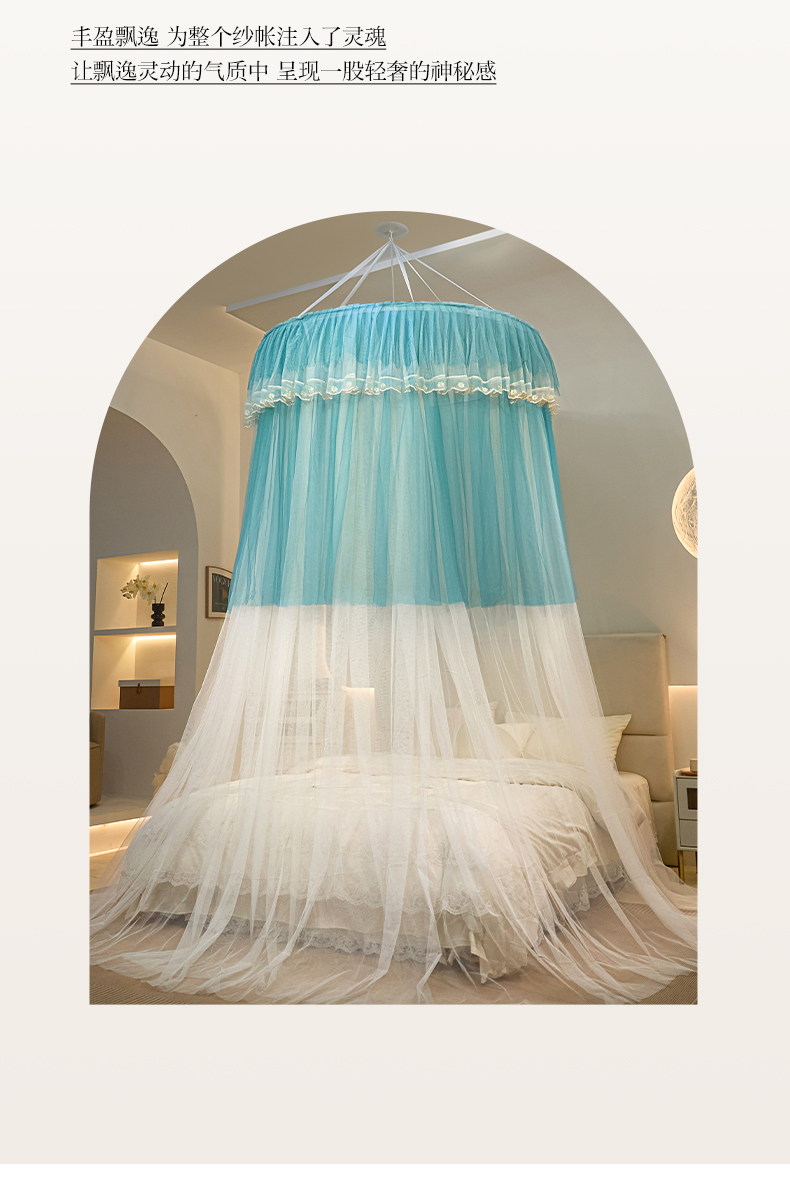商品名称:世婕 2025新款奢华宫廷吊顶蚊帐-幻梦 幻梦海蓝色