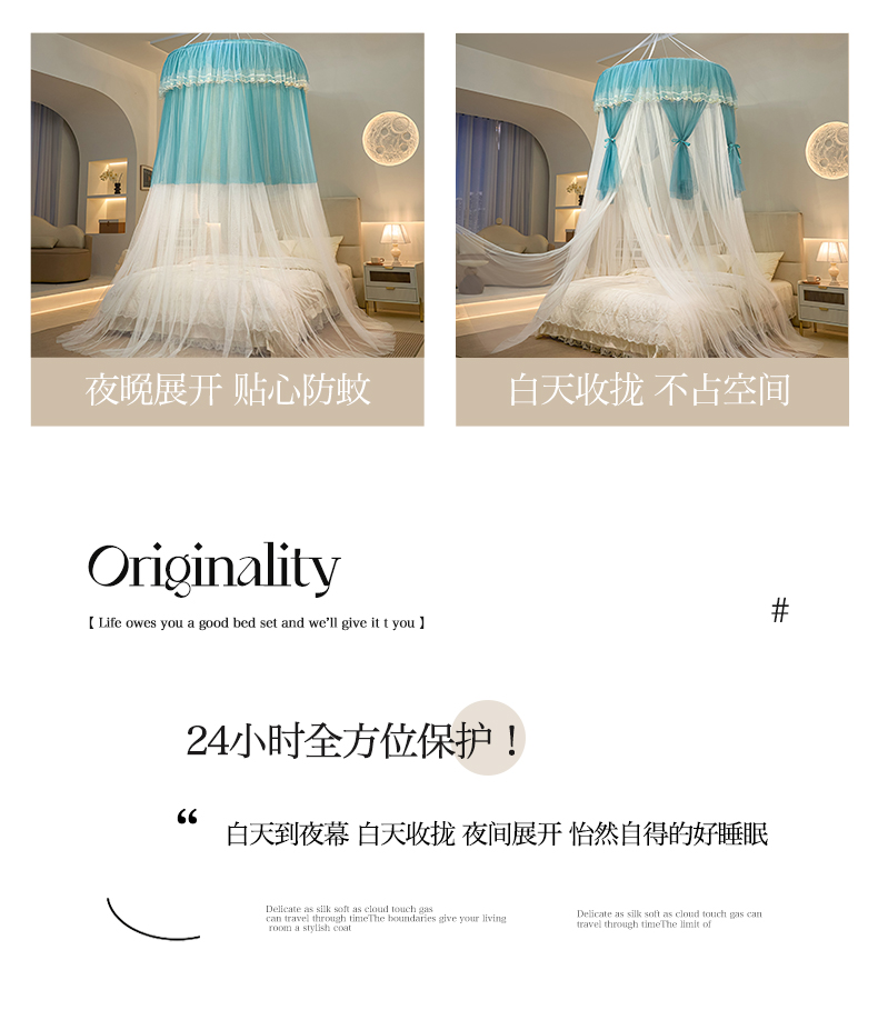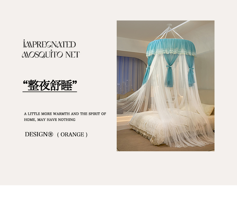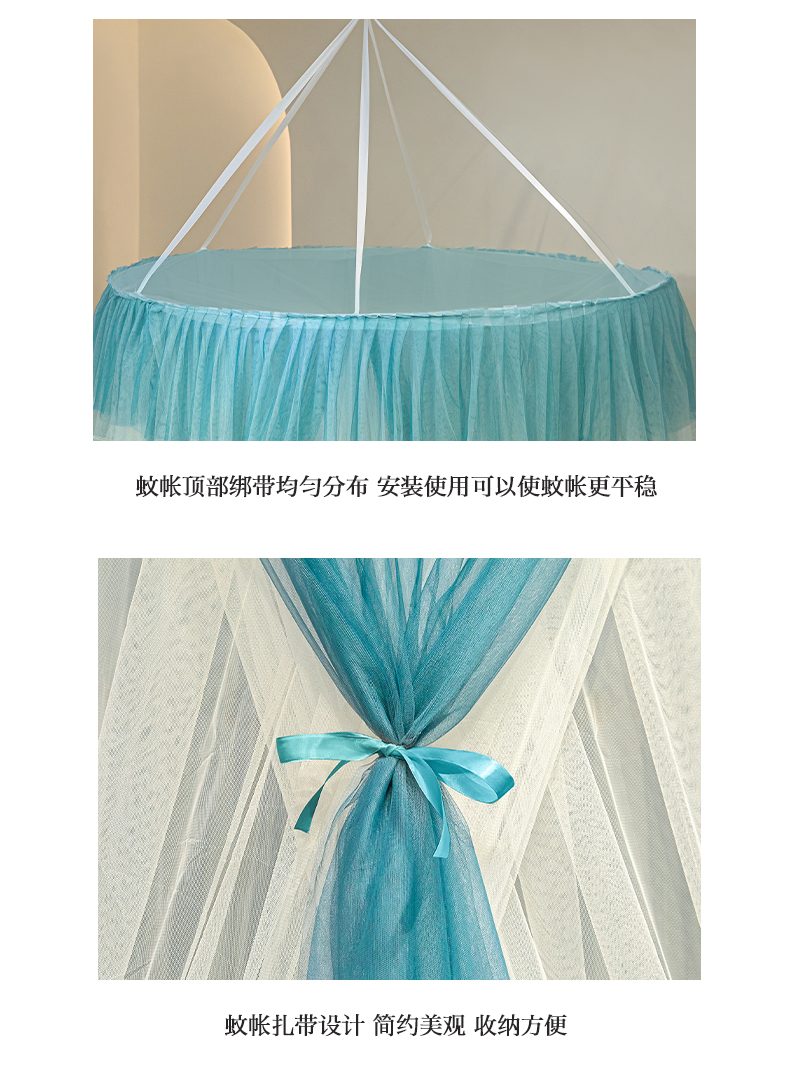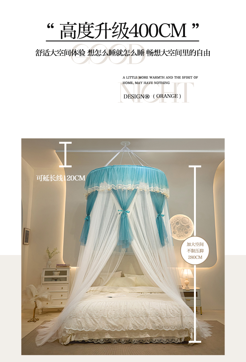商品名称:世婕 2025新款奢华宫廷吊顶蚊帐-幻梦 幻梦海蓝色